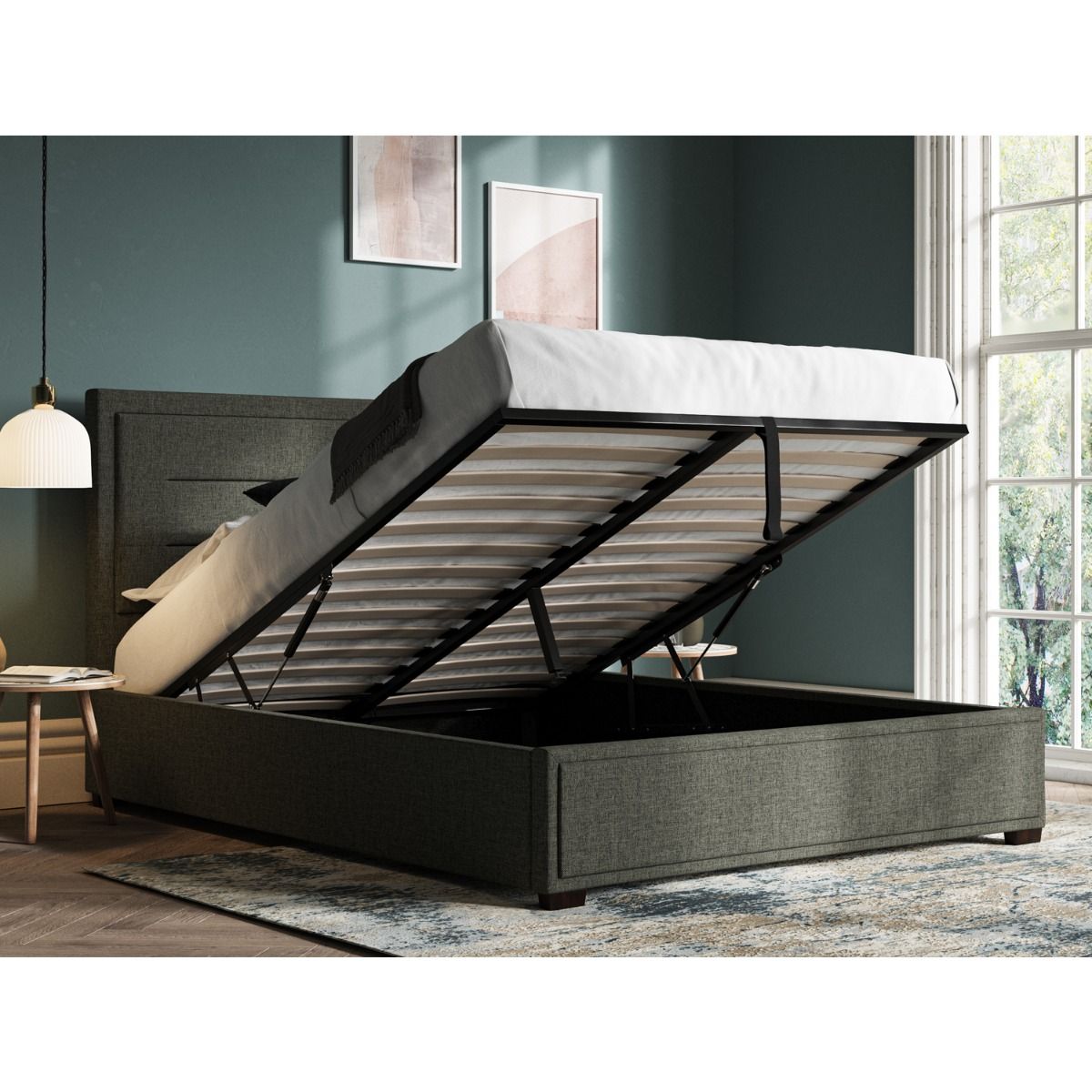 Knightsbridge Fabric Ottoman Grey Bed Frame - 6ft Super Kingsize