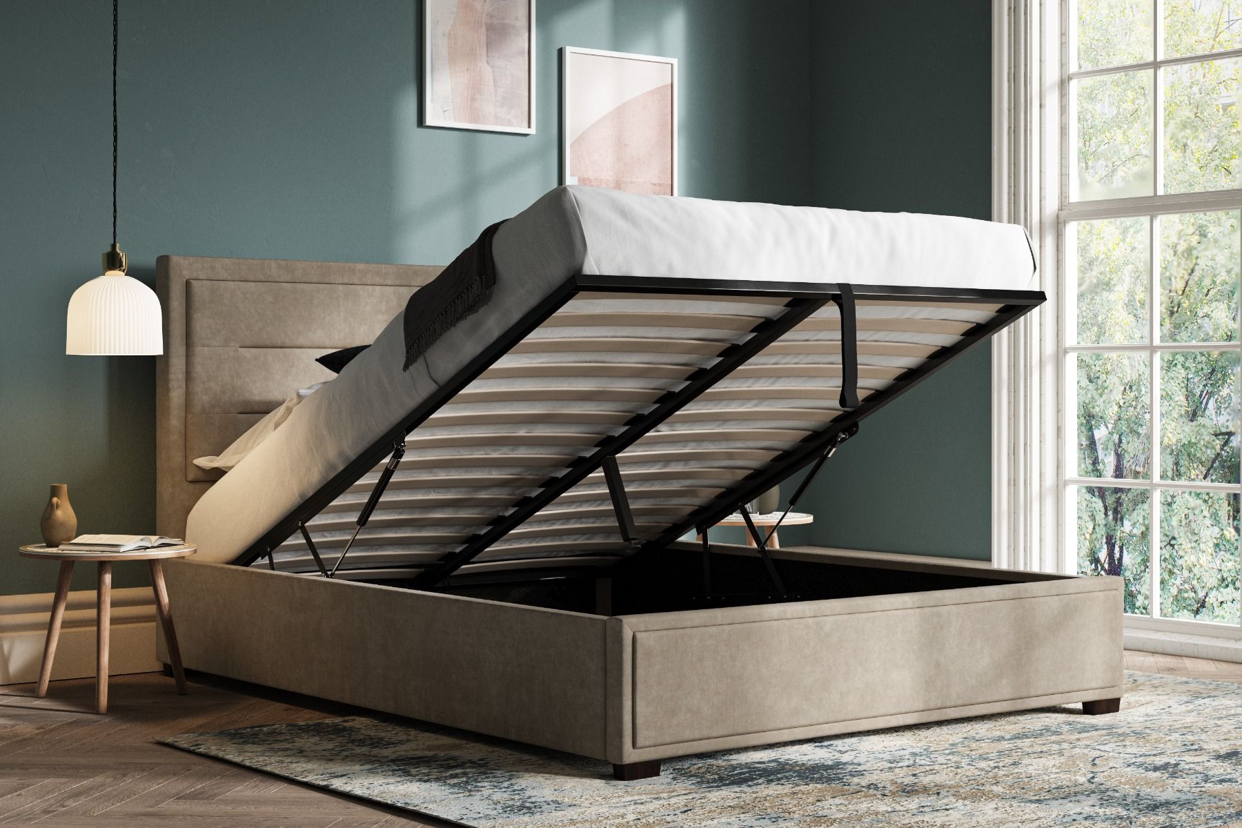 Knightsbridge Fabric Ottoman Stone Chenille Bed Frame - Standard Double 4ft6