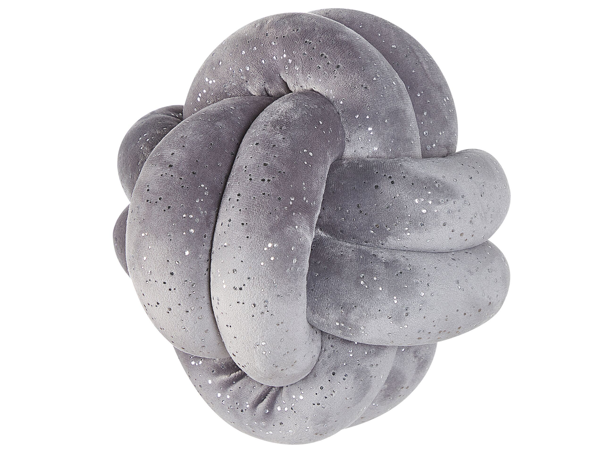 Bring a cosy feel to your living space with this beautiful knot cushion. Made from soft to touch polyester velvet, it's a perfect addition to any bed, chair or The cushion is adorned with silvery speckles of foil printing that resembles glitter for a glam touch. This extraordinary, stylish shape in classic shade works well with Scandinavian, boho or even retro interior design. Details: Color: Grey. Main material: Velvet. Material Composition: 100% Polyester Assembly: Does Not Require Assembly