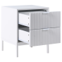 Bring refined style and practical storage to your bedroom with this elegant nightstand. Made from durable MDF, it features a sleek white finish and beautifully fluted fronts that add depth and texture to its contemporary design. The compact form includes a spacious drawer, ideal for keeping your essentials close at hand while maintaining a clutter free look. Raised on slim legs, this nightstand combines lightness and elegance, making it a versatile addition to both modern and classic interiors.