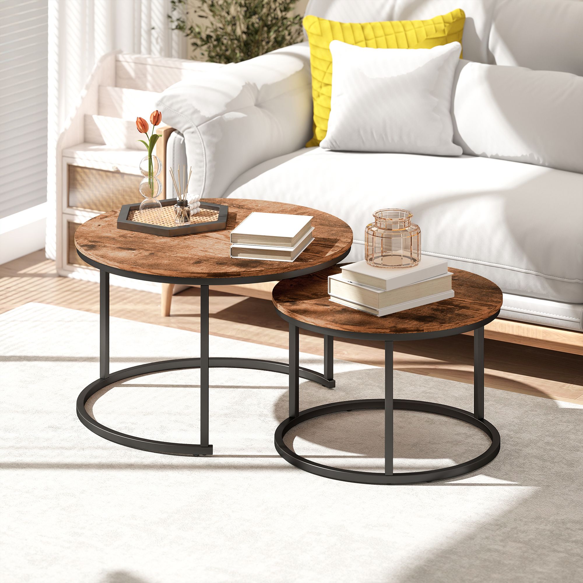 KRESTHAL Nest of Coffee Table with Metal Frame Set of 2 - Rustic Brown