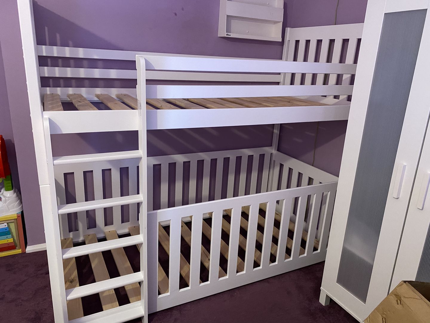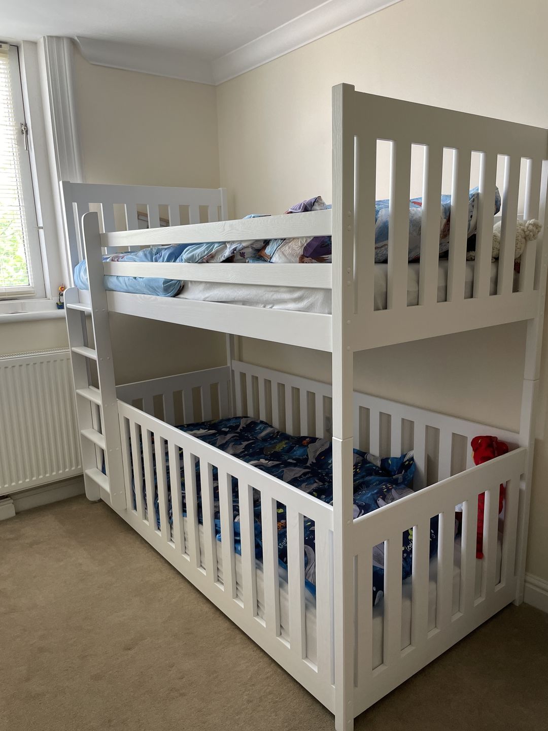 - The lower bed can be converted into a normal bed by exchanging the front safety guard for a basic side panel - included in the packaging