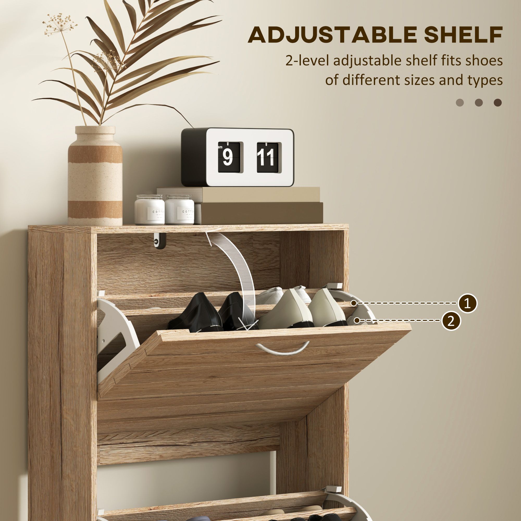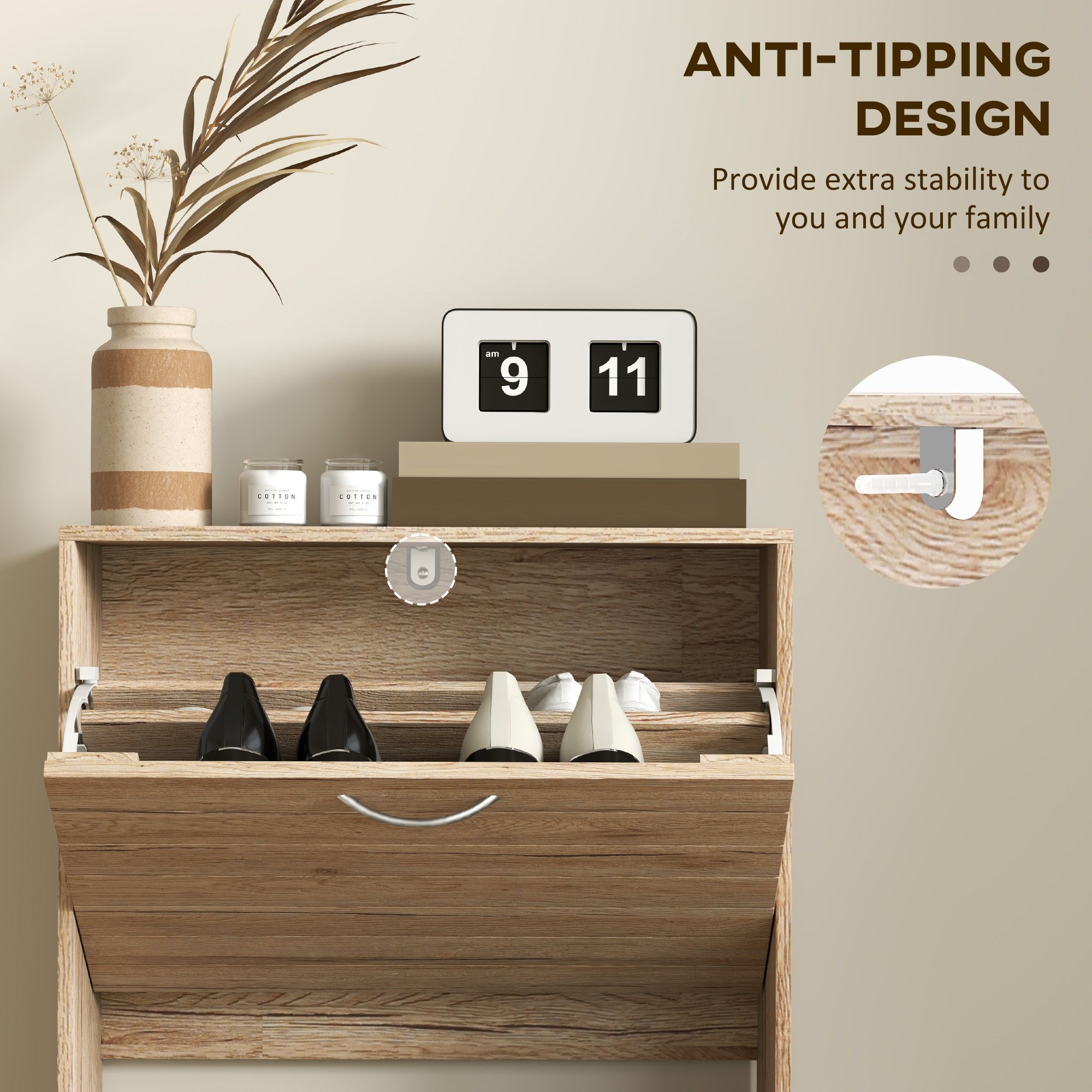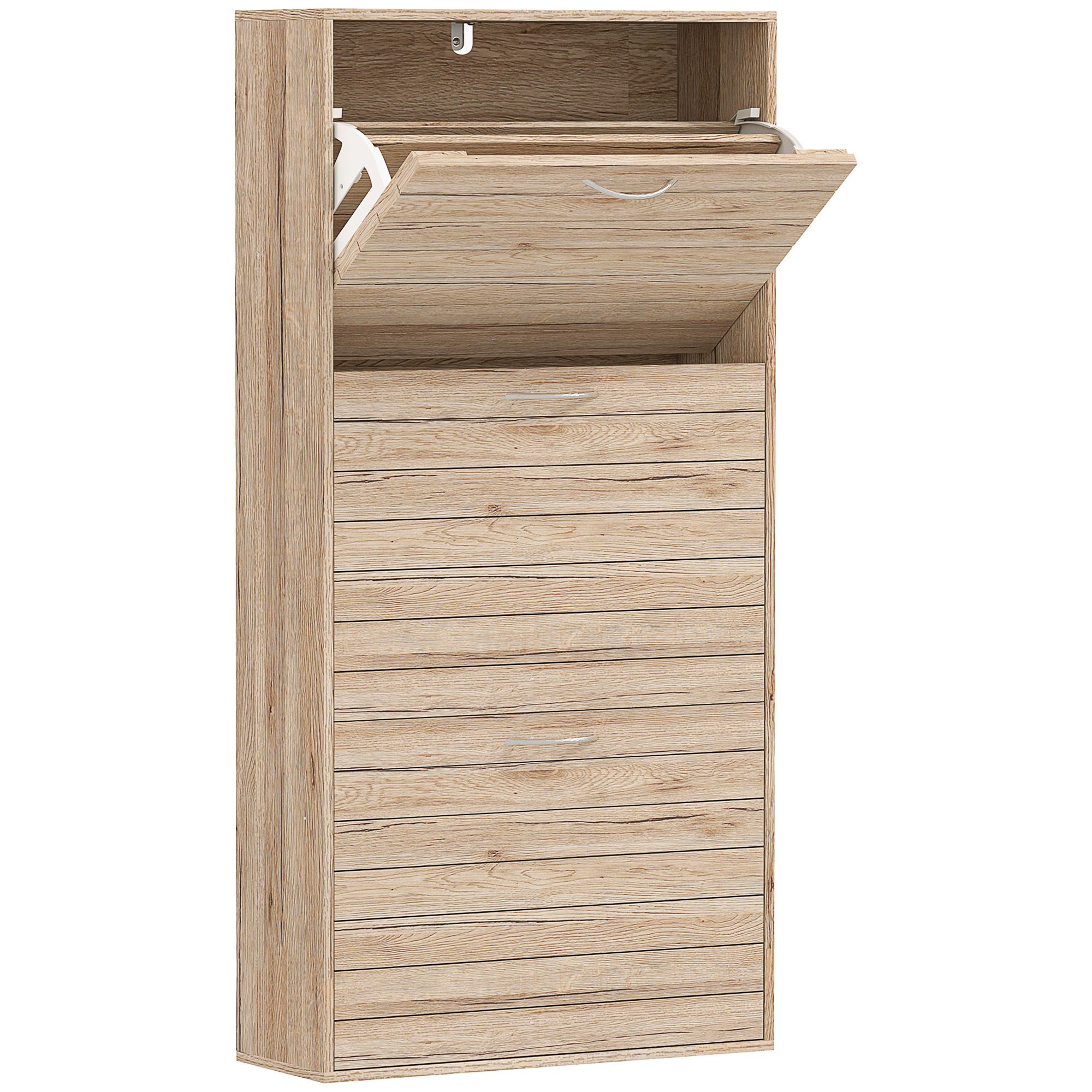 KULEY 3 Flip Drawers Narrow Shoe Cabinet Oak Finish