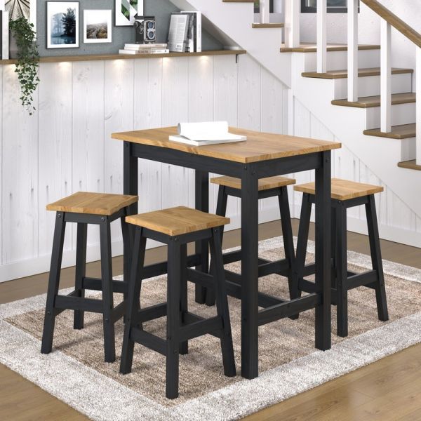 Kyla Large Rectangular High Breakfast Bar Table with Bar Stools Set