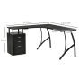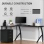 Modern and sleek, this work desk from looks as good as it feels when working, supporting you properly when you need to focus hard. Its 'L' shaped design fits perfectly into corners to help utilise space more efficiently. The frame is made from steel frame for a tough structure, fitted with MDF shelves so you can work well. There's plenty of space to work and have your computer and other devices on top. It's finished with a three-drawer cabinet so you can keep papers and more safely stored.