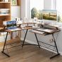 L-shaped Computer Desk with Power Outlet and Monitor Stand-Rustic Brown