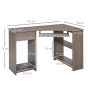 L-Shaped Corner Computer Desk w/ 2 Shelves Wide Worktop Keyboard Tray Drawer & CPU Stand Home Office Study Bedroom Furniture Grey