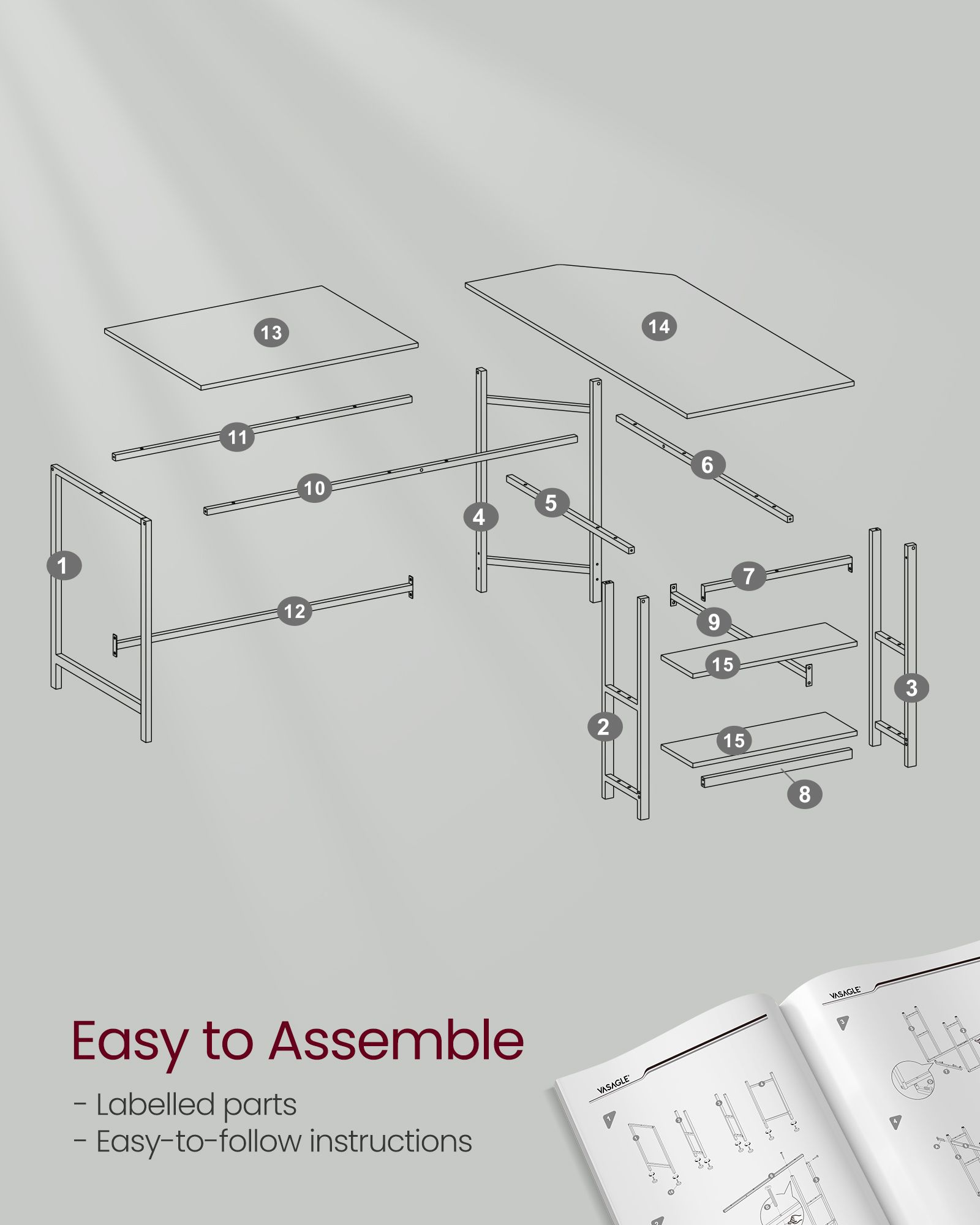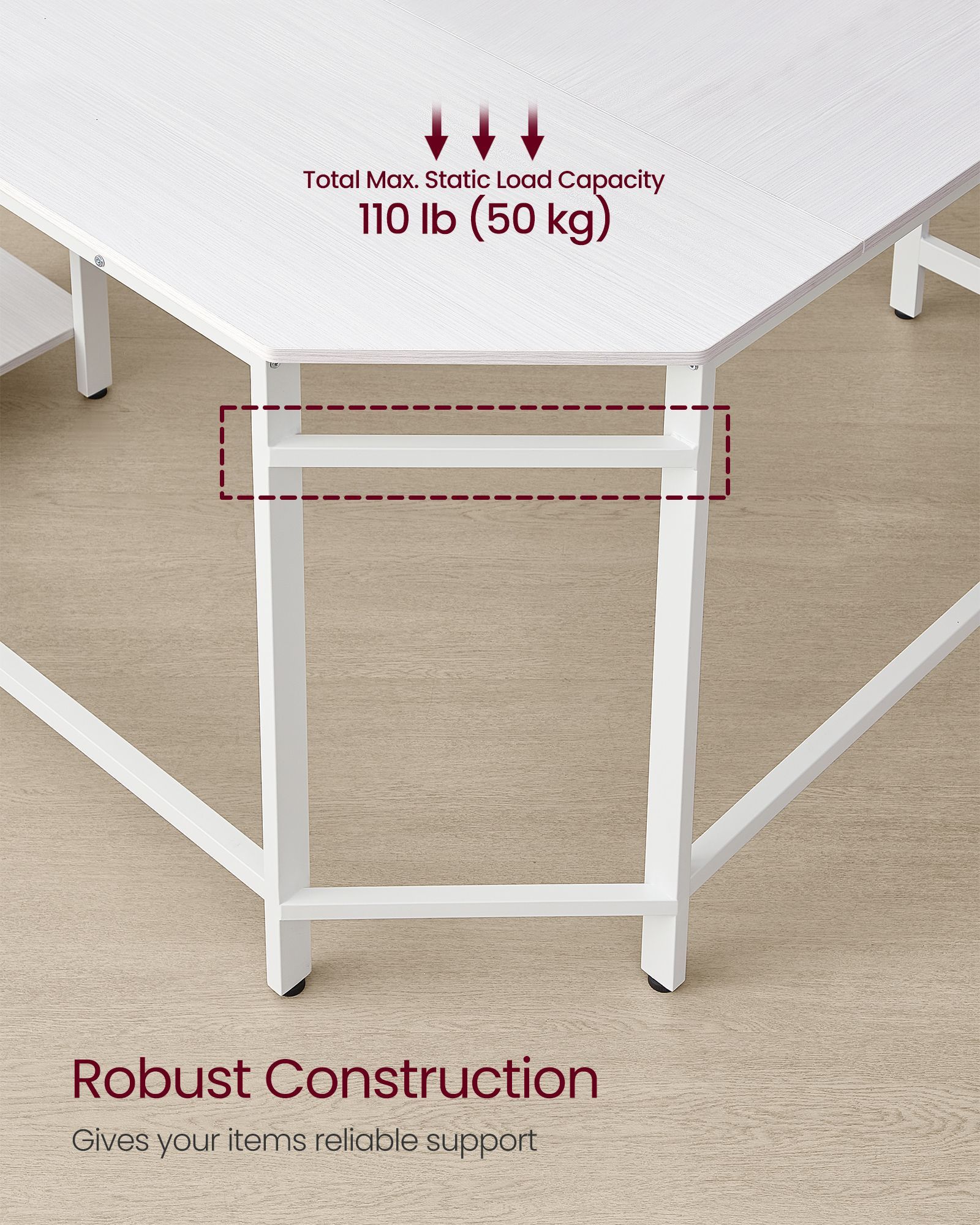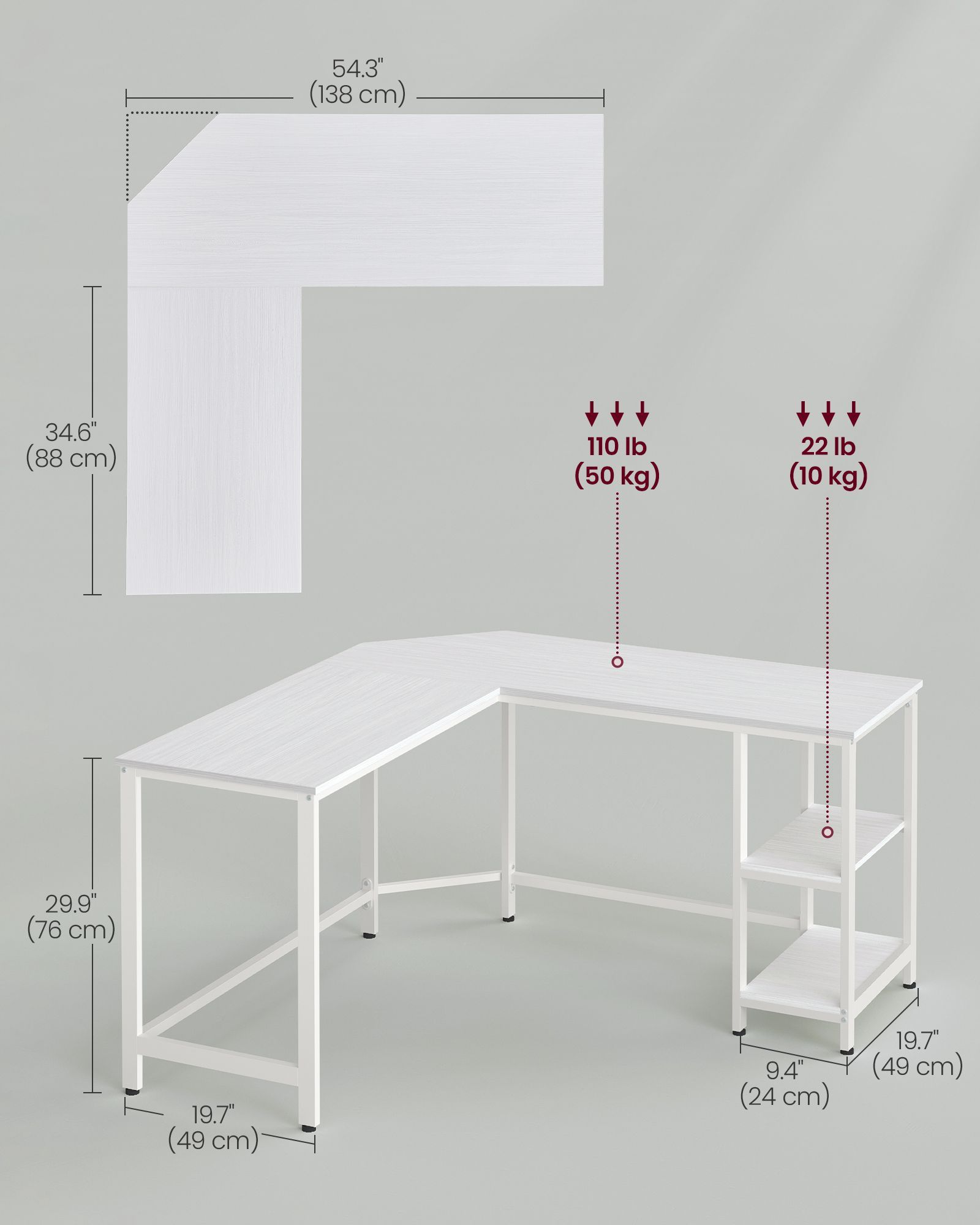 Maximize your workspace with this L-shaped corner computer desk. Designed to fit snugly into corners, this desk offers ample surface area for your computer, paperwork, and accessories. Its L-shaped design provides versatility and space-saving benefits, making it ideal for home offices or small spaces. Constructed from durable materials, this desk ensures stability and longevity. Enhance your productivity and organization with this practical L-shaped corner computer desk.