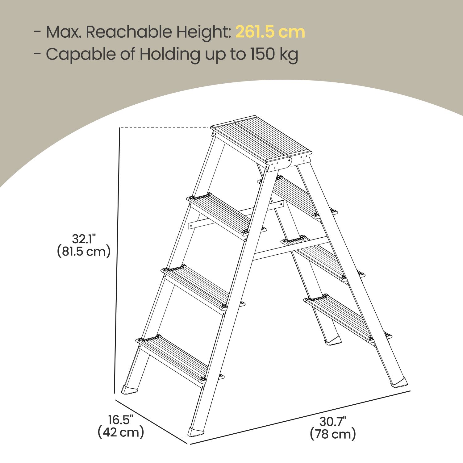 Ladder - FIORIA 4-Step Aluminium Multi-Purpose Ladder with Non-Slip Steps and 150 kg Capacity - Silver