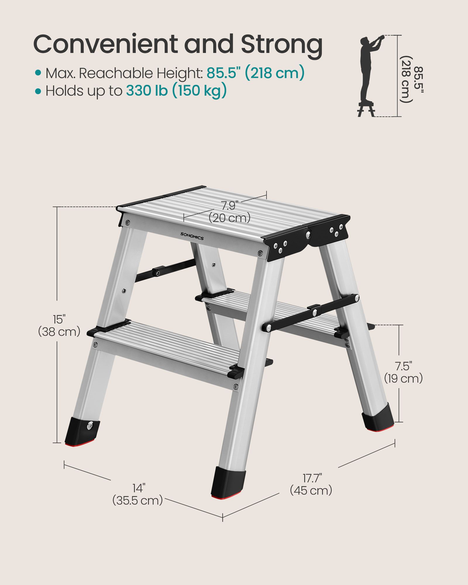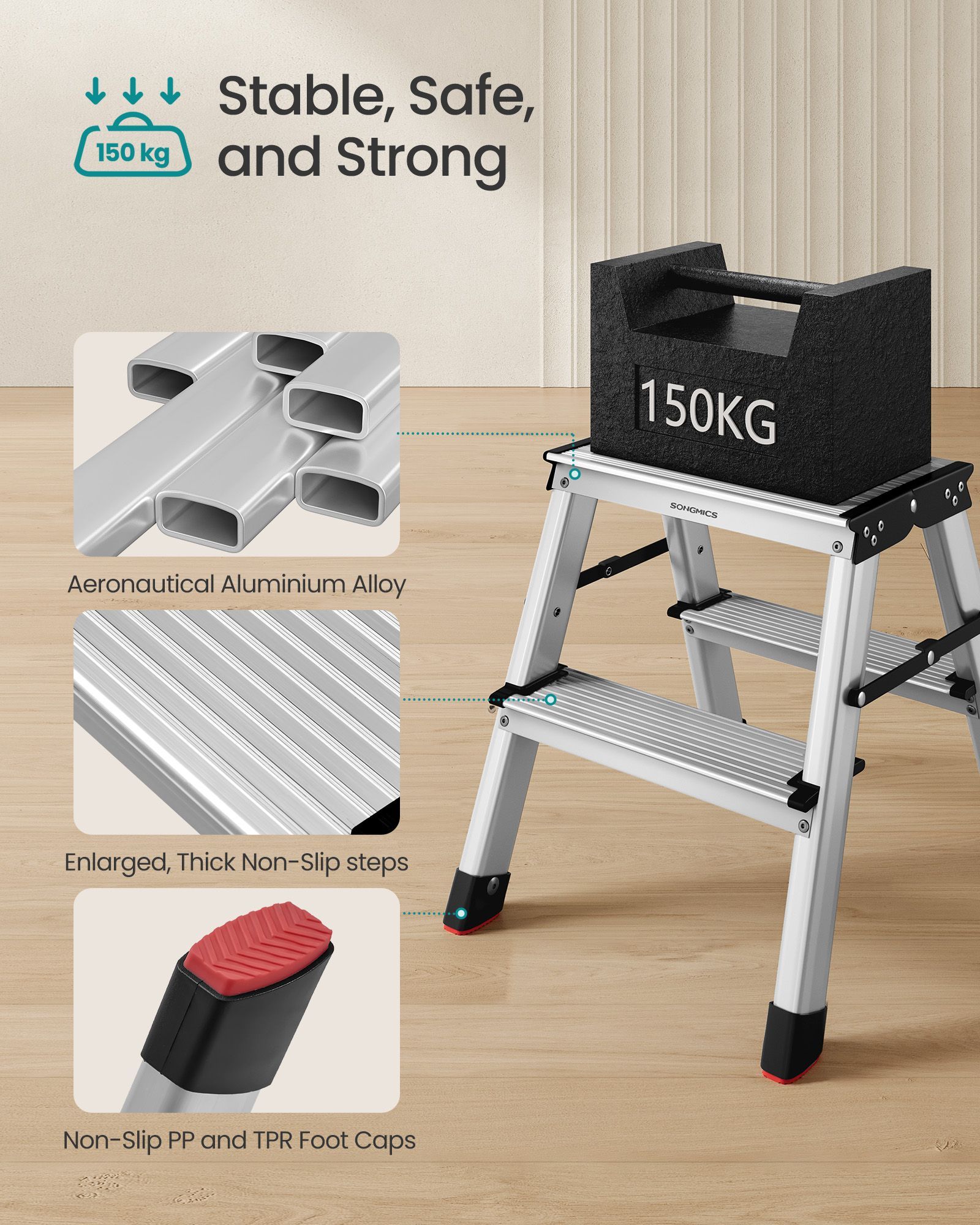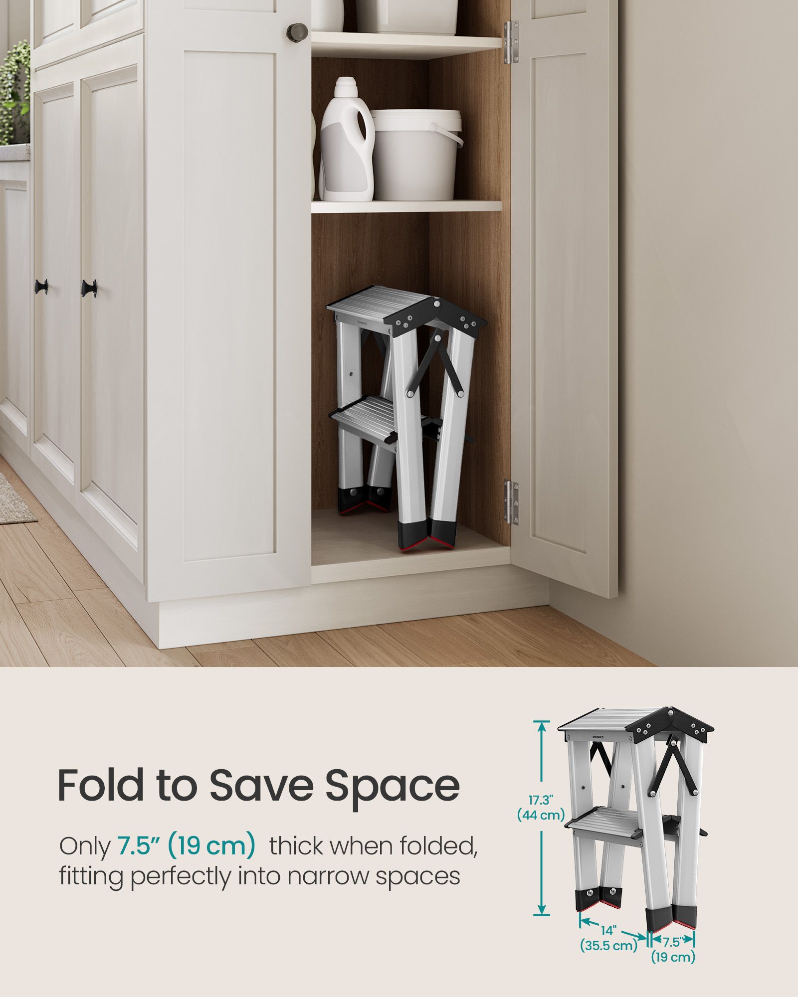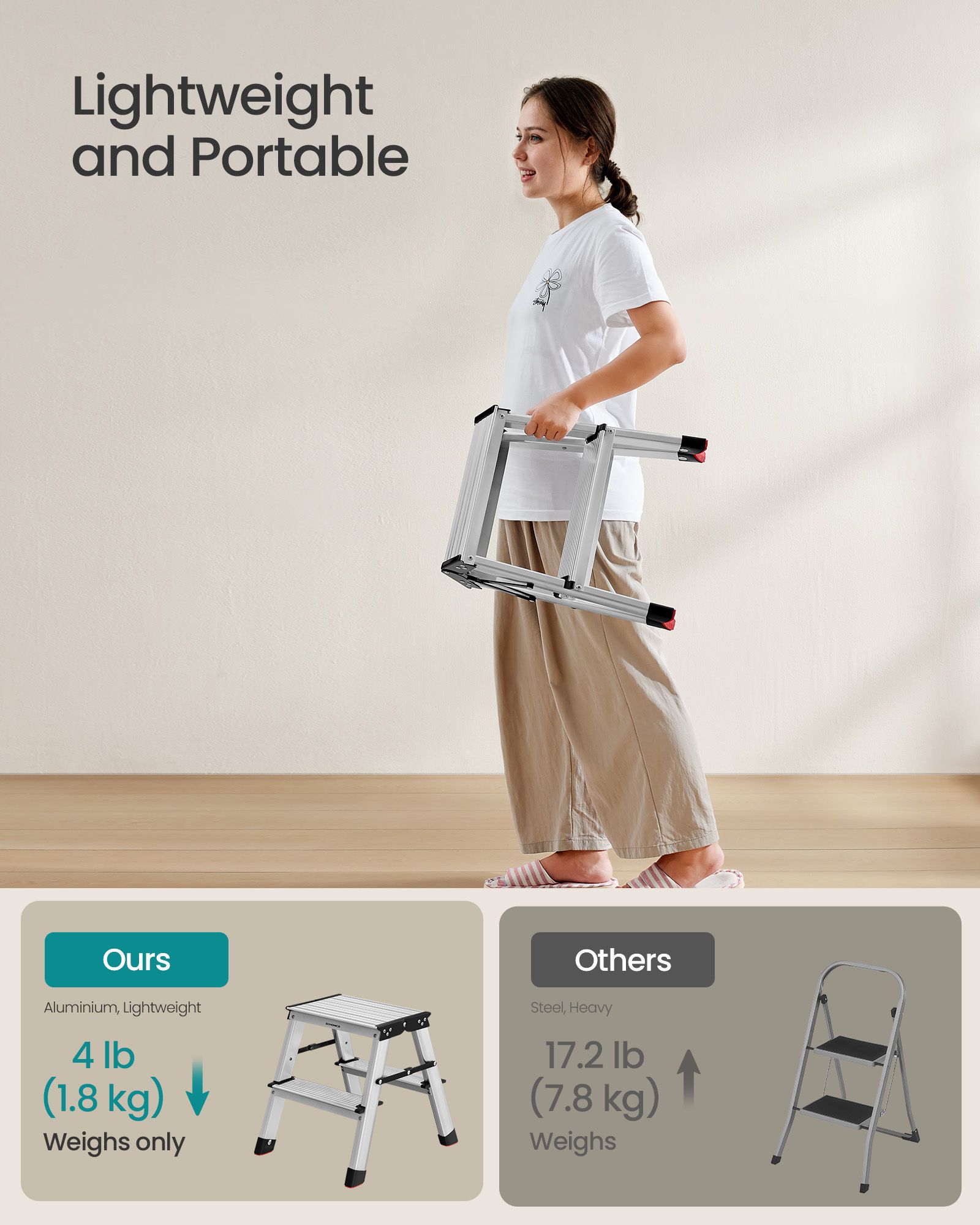 Ladder - LUMVA 2-Step Aluminium Folding Ladder - Black Silver Grey