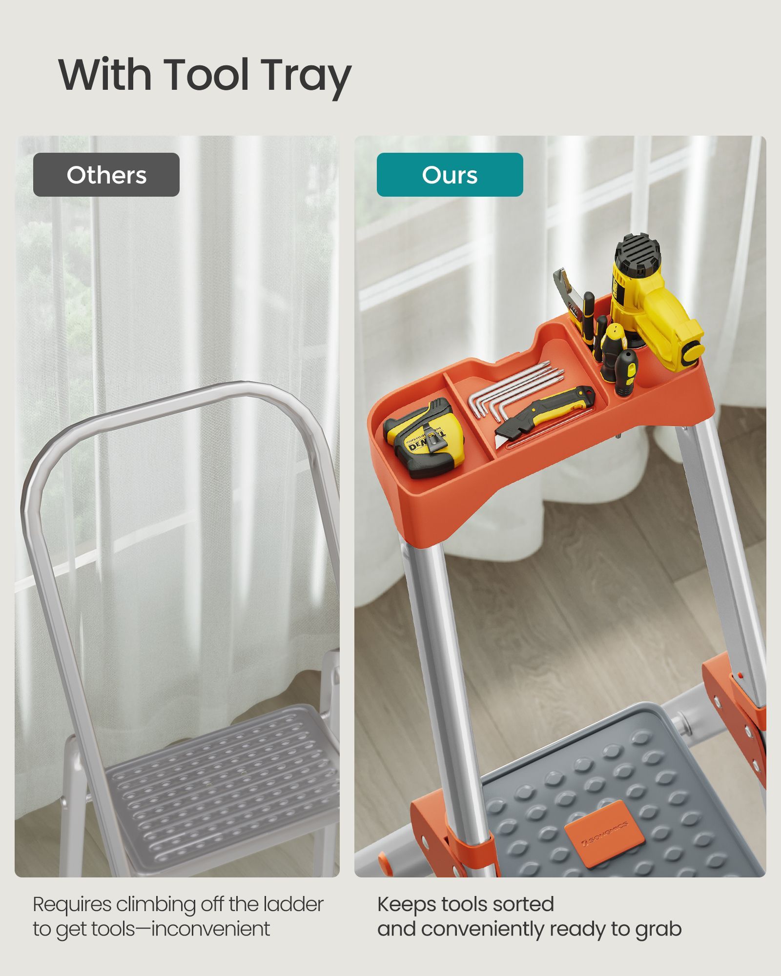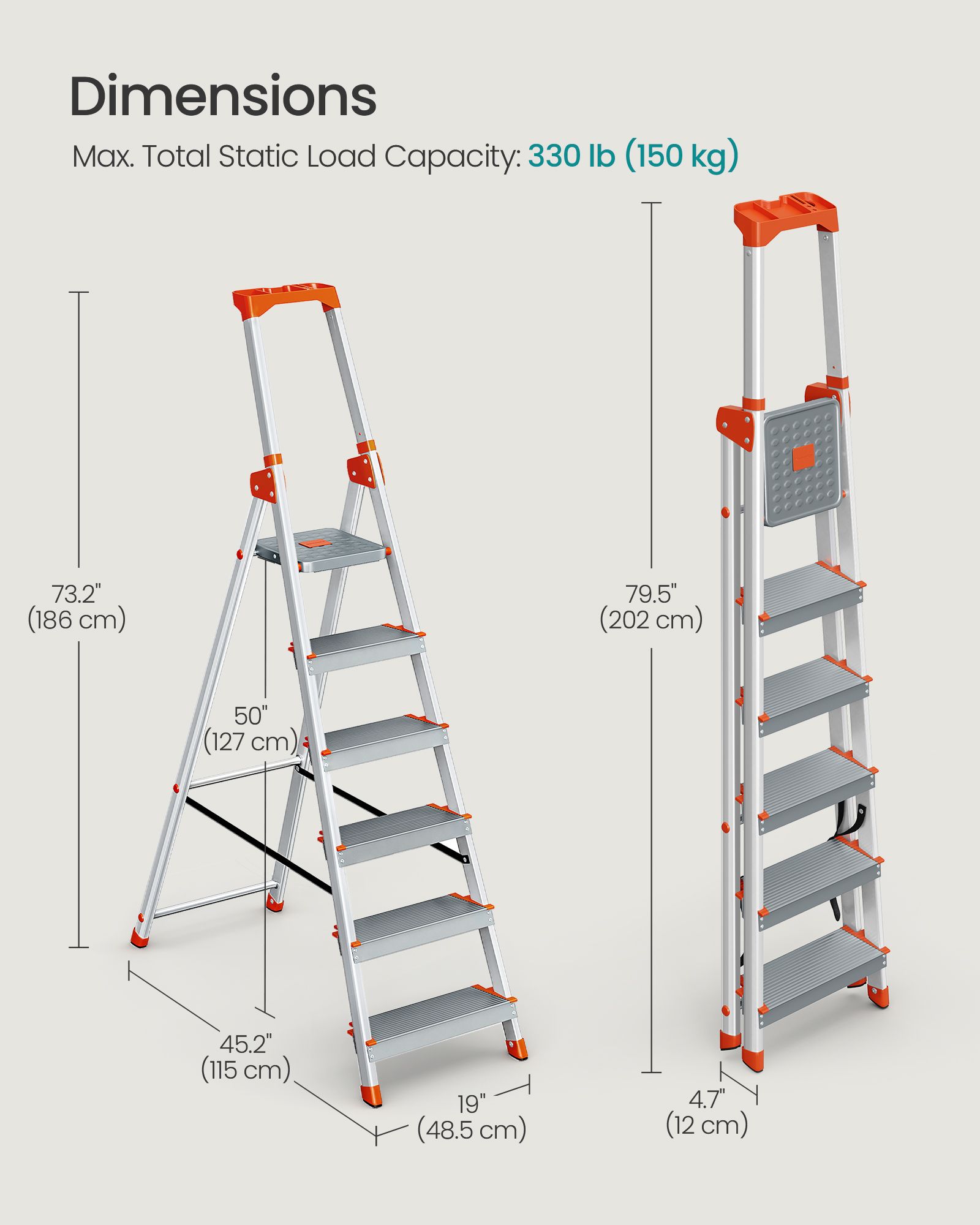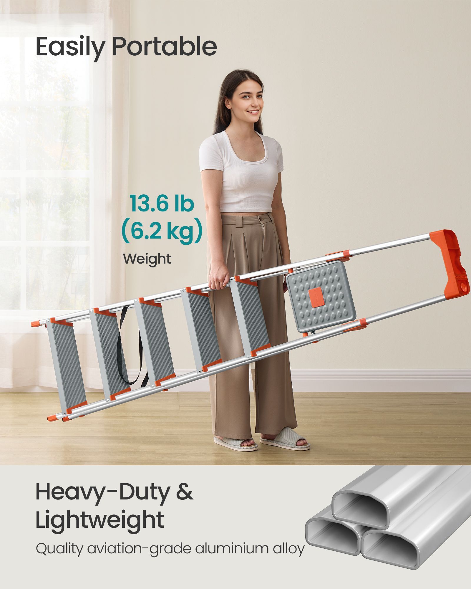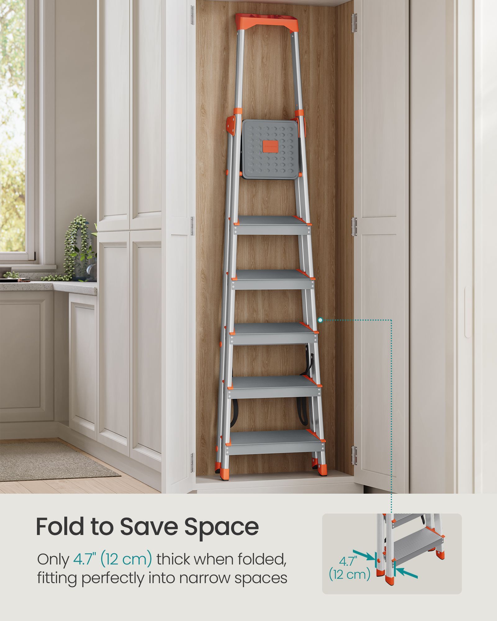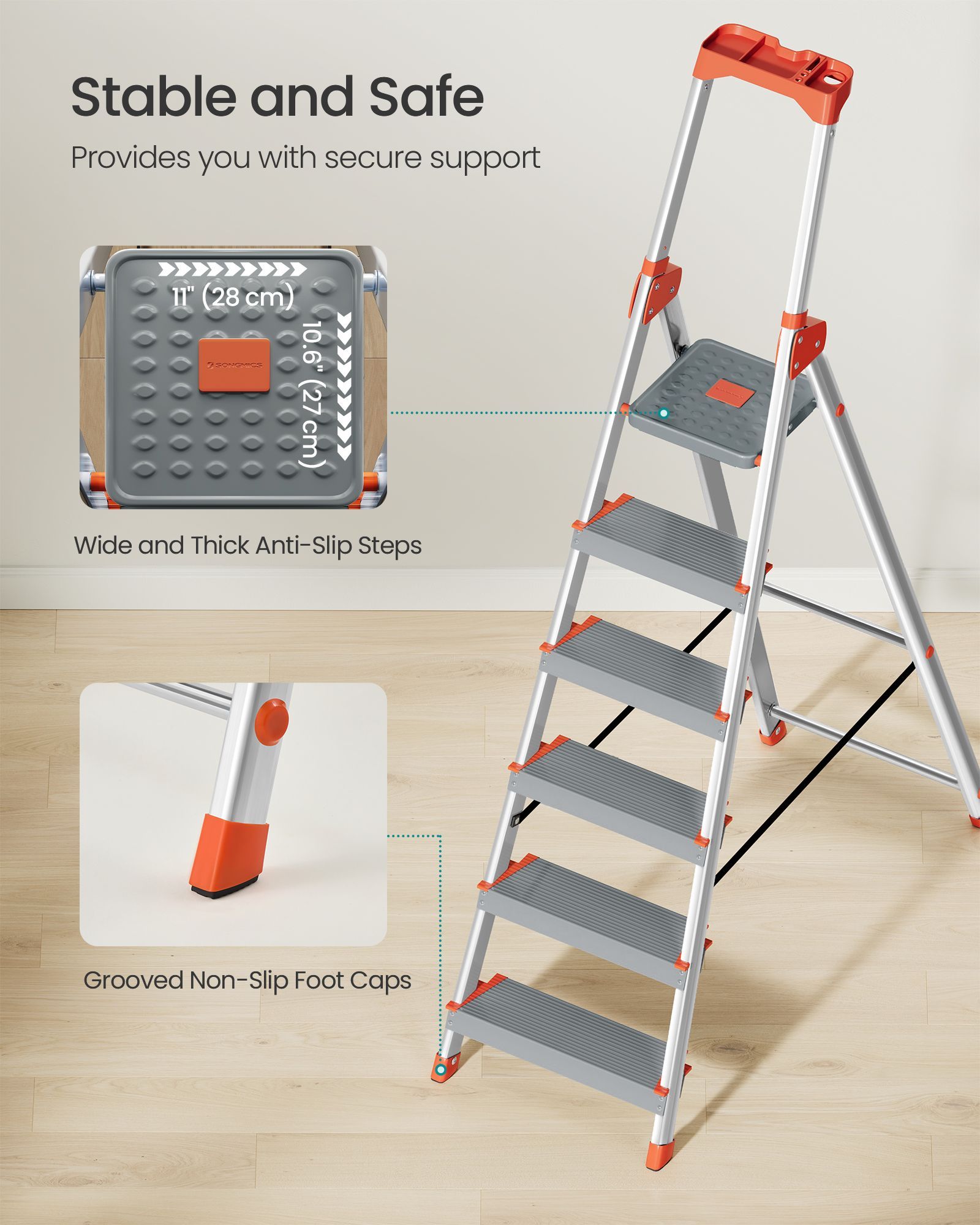 Ladder - LUMVA 6-Step Aluminium with 12 cm Deep Steps - Silver and Orange