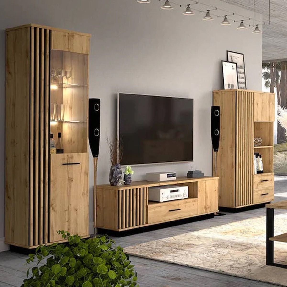 LAMORIA Tall Display Cabinet Oak Wotan 90cm