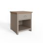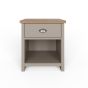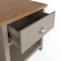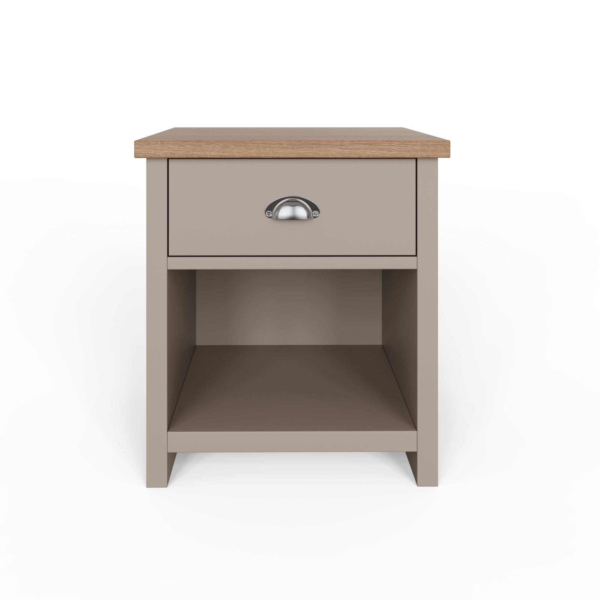 This charming lamp table will bring contemporary styling to any home. Features include a handy drawer with a satin silver handle and a useful storage shelf underneath. Its matt grey finish and oak veneered top matches perfectly with the rest of the Lancaster range and would be at home in any living or dining room.