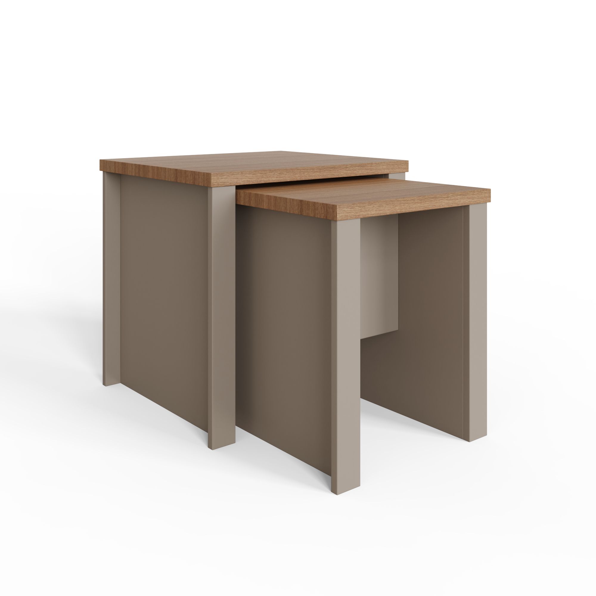 A classic nest of tables reinvented for a new generation. The Lancaster range is popular because the smart combination of painted frame and oak-effect top makes it a good fit for both period and contemporary interiors. Take this versatile duo as apair of handy occasional tables that offer plenty of options when guests arrive but can be stacked neatly together to save space when not in use. A choice of grey, cream or slate blue finishes to suit most colour schemes. A great addition to any living space.