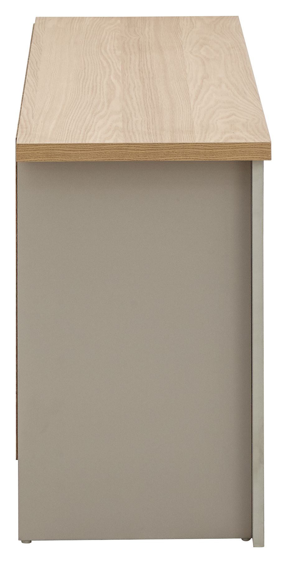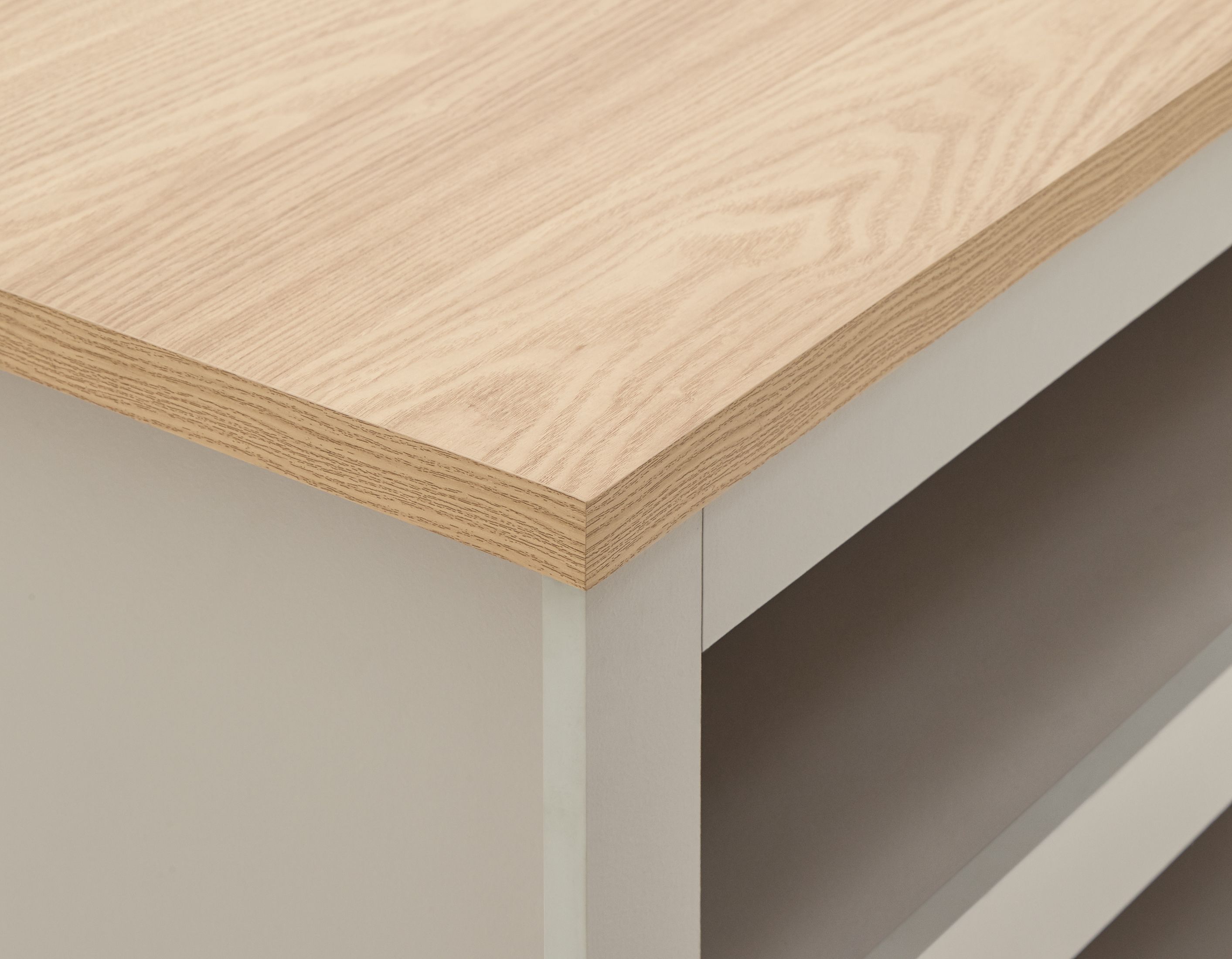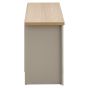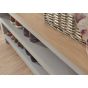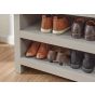 This superbly stylish shoe cabinet. The sturdy construction incorporates two tiers of shelving as enough for at least eight pairs of standard-sized mens shoes or ankle boots. A chunky base as in grey, cream or slate blue finishes as is partnered with a squared-off 25mm oak-effect top, making it a good match for period and contemporary interiors alike. Stack shoes underneath and leave the top free for bags, phones and car keys, or adorn with a plant or lamp. A top choice for busy hallways as now theres no excuse for a shoe mountain