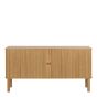 Enhance your space with our elegantly designed sideboard, featuring a sleek oak effect finish, innovative sliding and tambour doors, and ample storage with two sturdy shelves. Its sophisticated lamella design complements any decor, offering both functionality and a touch of modernity.