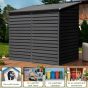 Our Large Hemidome Metal Tool Shed presents a stylish and practical storage solution for your outdoor space. Finished in sleek black, this shed adds a modern touch to your backyard or garden. With dimensions of L144W270H202cm, it offers ample space for your tools and equipment while its single door ensures easy access. Crafted from durable 0.26mm thickness zinc steel, this shed guarantees longevity and resilience against the elements. Upgrade your outdoor storage with our Large Hemidome Metal Tool Shed, blending functionality with contemporary design effortlessly.
