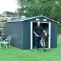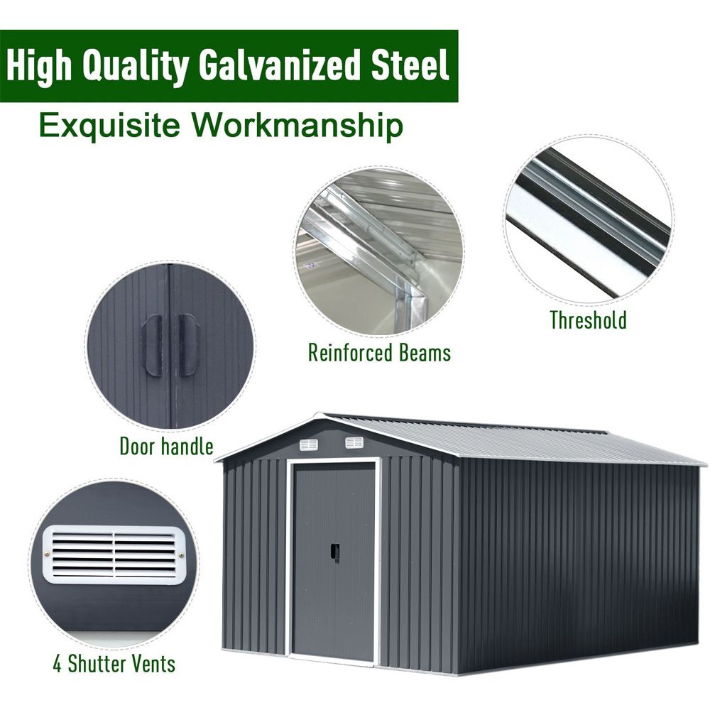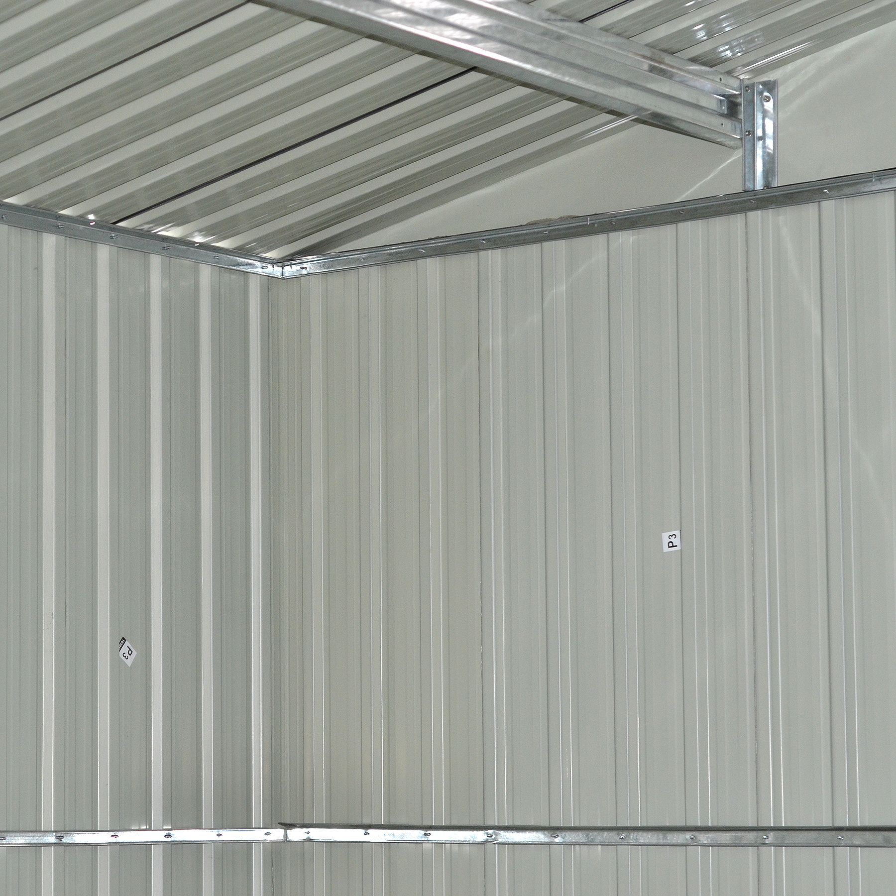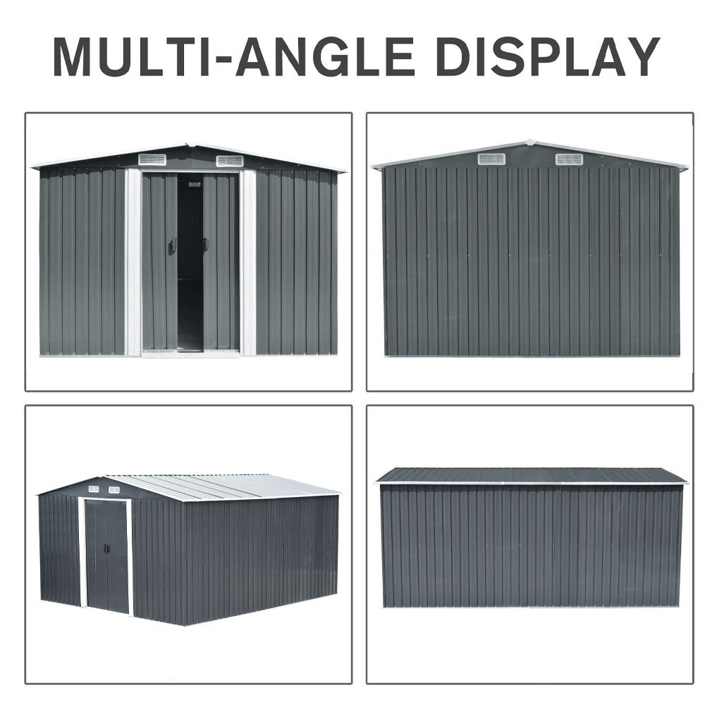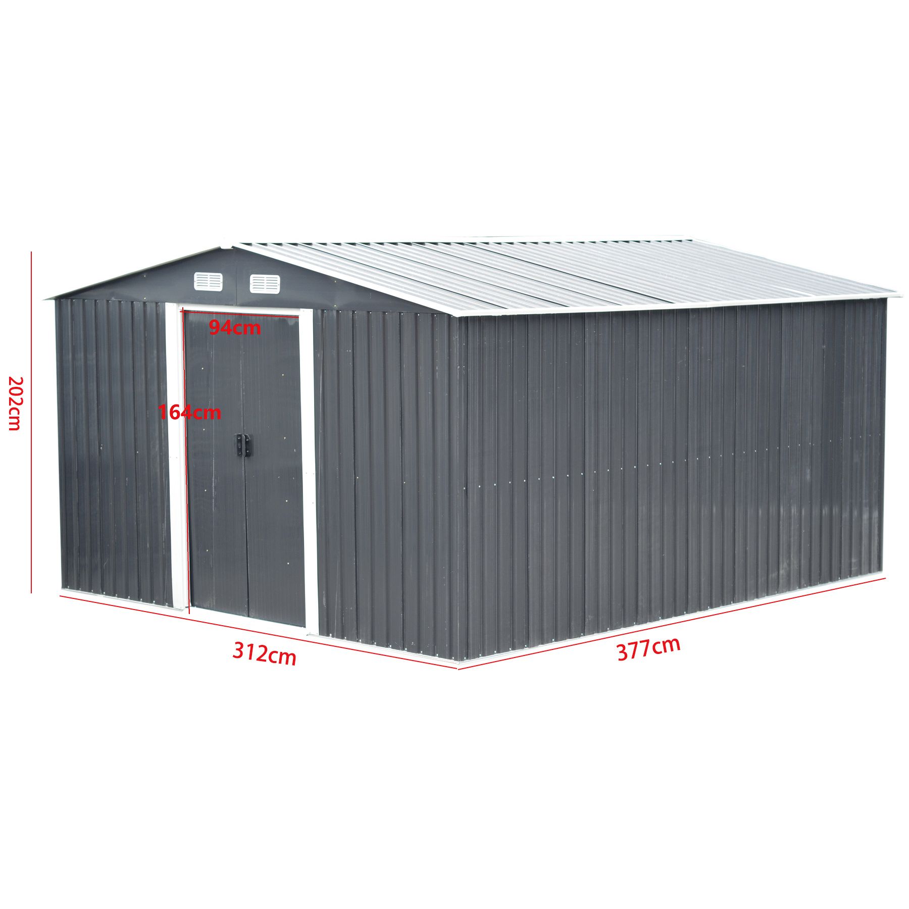 Discover the ideal storage solution with our Large Peaked Metal Tool Shed, designed to meet all your organizational needs. With dimensions of L 3120X W3770XH 2020mm, this spacious shed provides ample room for your tools and equipment. Crafted with durability in mind, it features a Zinc-steel frame measuring 0.6mm, ensuring long-lasting strength and stability. Equipped with two doors for easy access and four ventilation openings to keep your belongings well-aerated, this shed offers both convenience and functionality. Its iron thickness of 0.27mm guarantees resilience against various weather conditions, making it suitable for both residential and professional settings. Upgrade your storage solutions today with our reliable Large Peaked Metal Tool Shed.