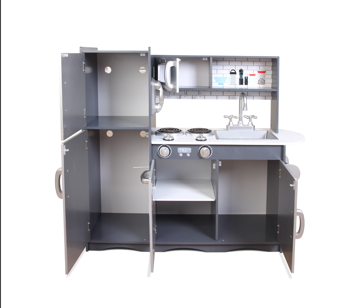 Large Wooden Kitchen Kids Play Pretend Utensils Toys - Grey