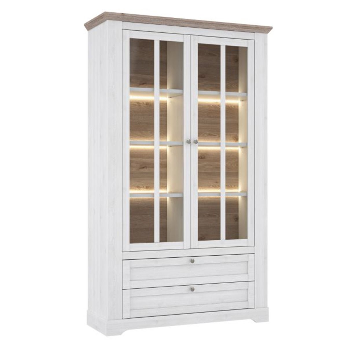 Launceston 2 Glass Door Display Unit with 2 Drawers - Oak Nelson with Snowy Oak