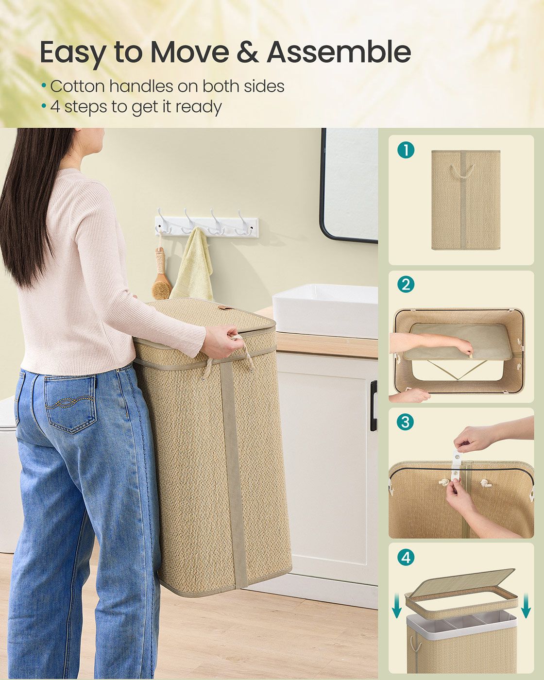 Laundry Basket - LUMNIA 90L Bamboo Clothes Organizer - Natural