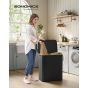 Laundry Basket - LUSNZA 150L 3-Section with Lid - Black