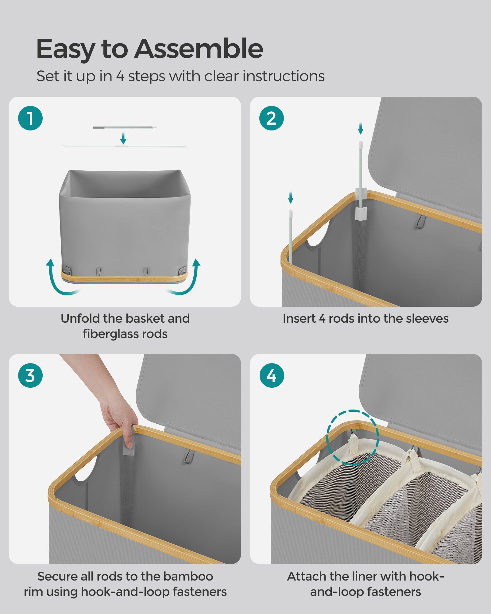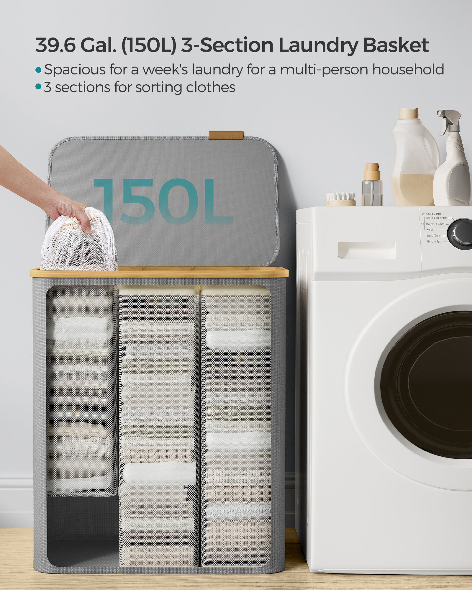 Laundry Basket - LUSNZA 150L 3-Section with Lid - Dove Grey