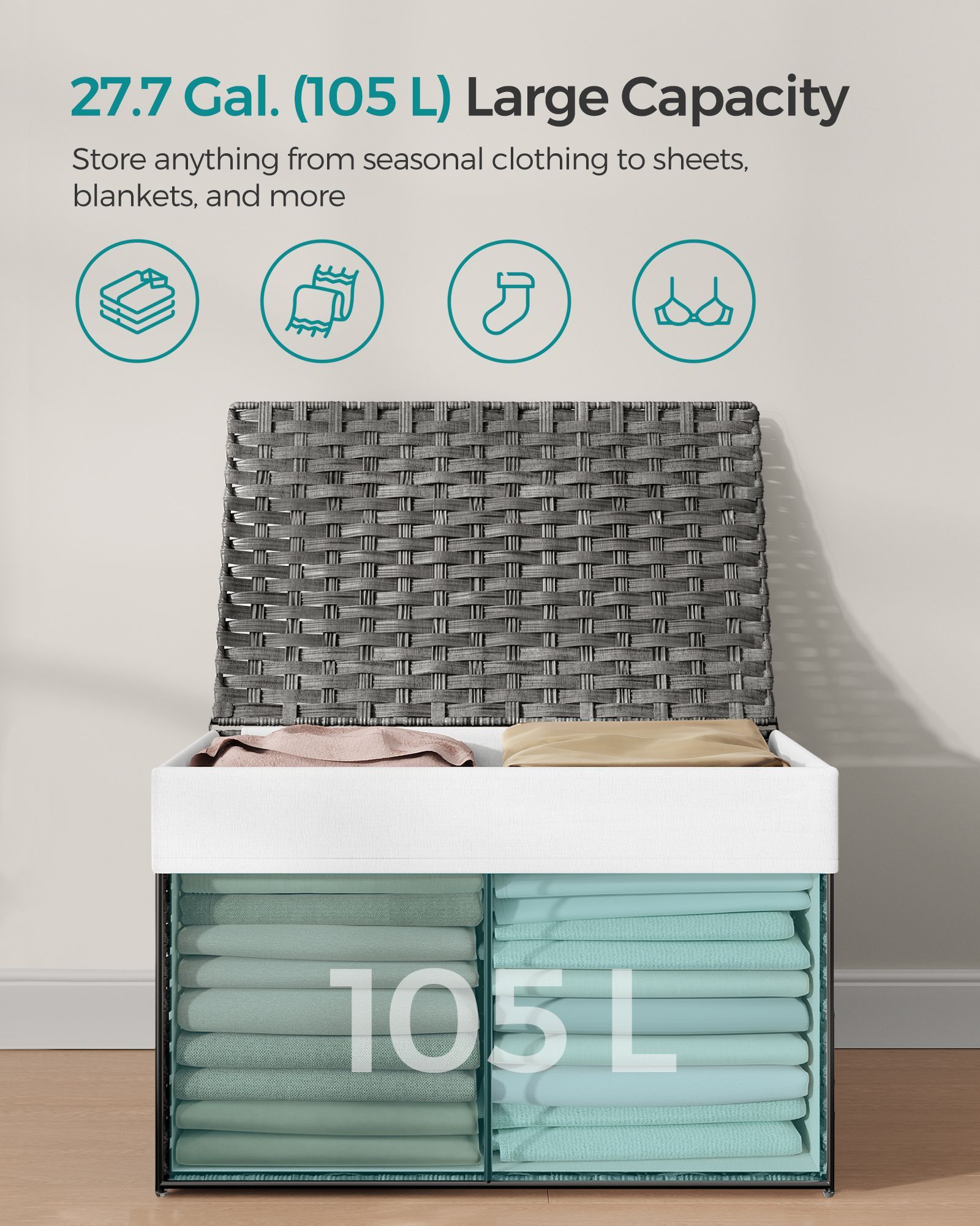 Laundry Basket - LUSSO 105L Synthetic Rattan Foldable with Lid and Handles - Dove Grey