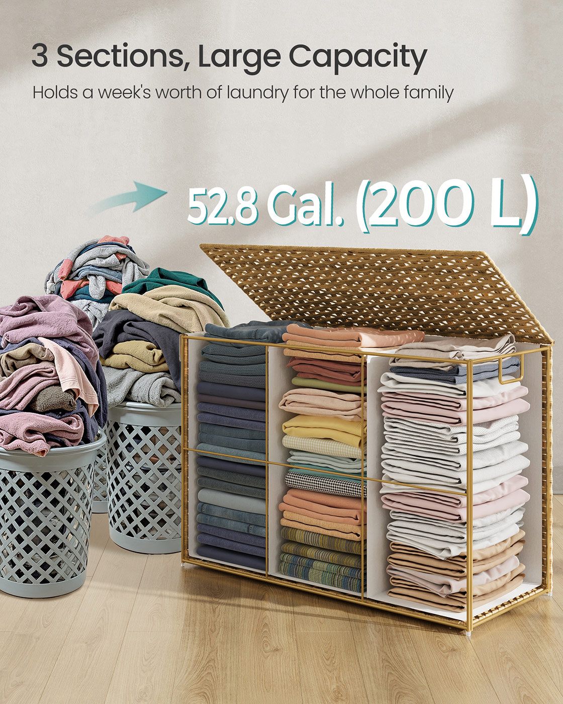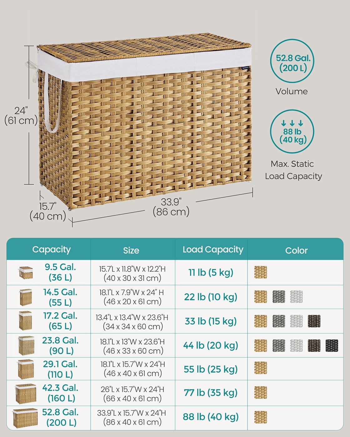Laundry Basket - NOVTA 200L Rolling Hamper with Lid - Natural