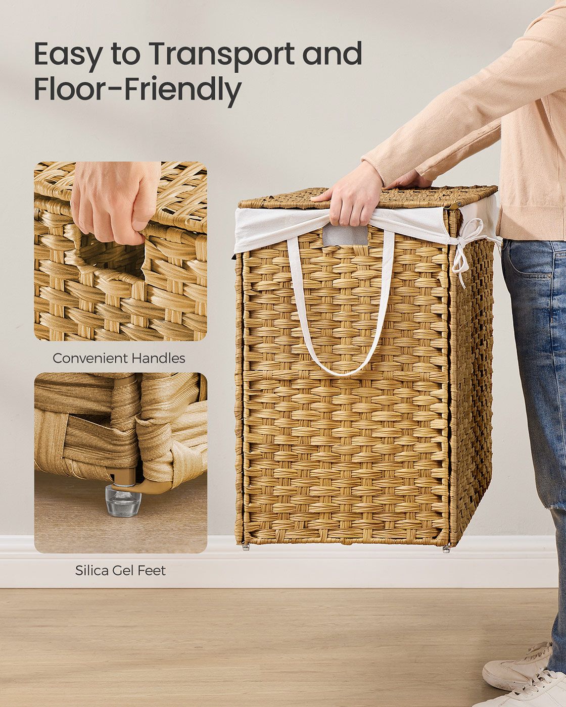 Laundry Basket - TARRIA 110L Synthetic Rattan Storage - Natural