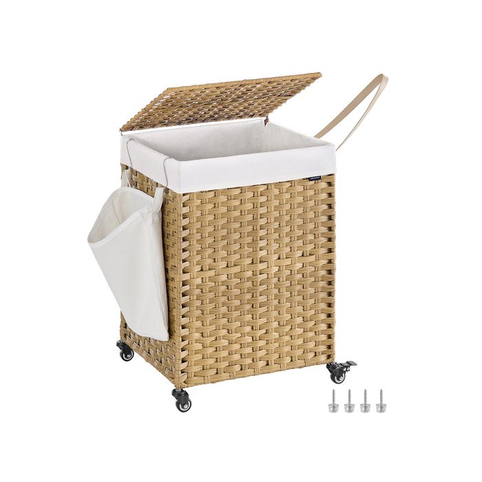 Laundry Basket - TARRIA Rolling Hamper 120L with Lid - Natural