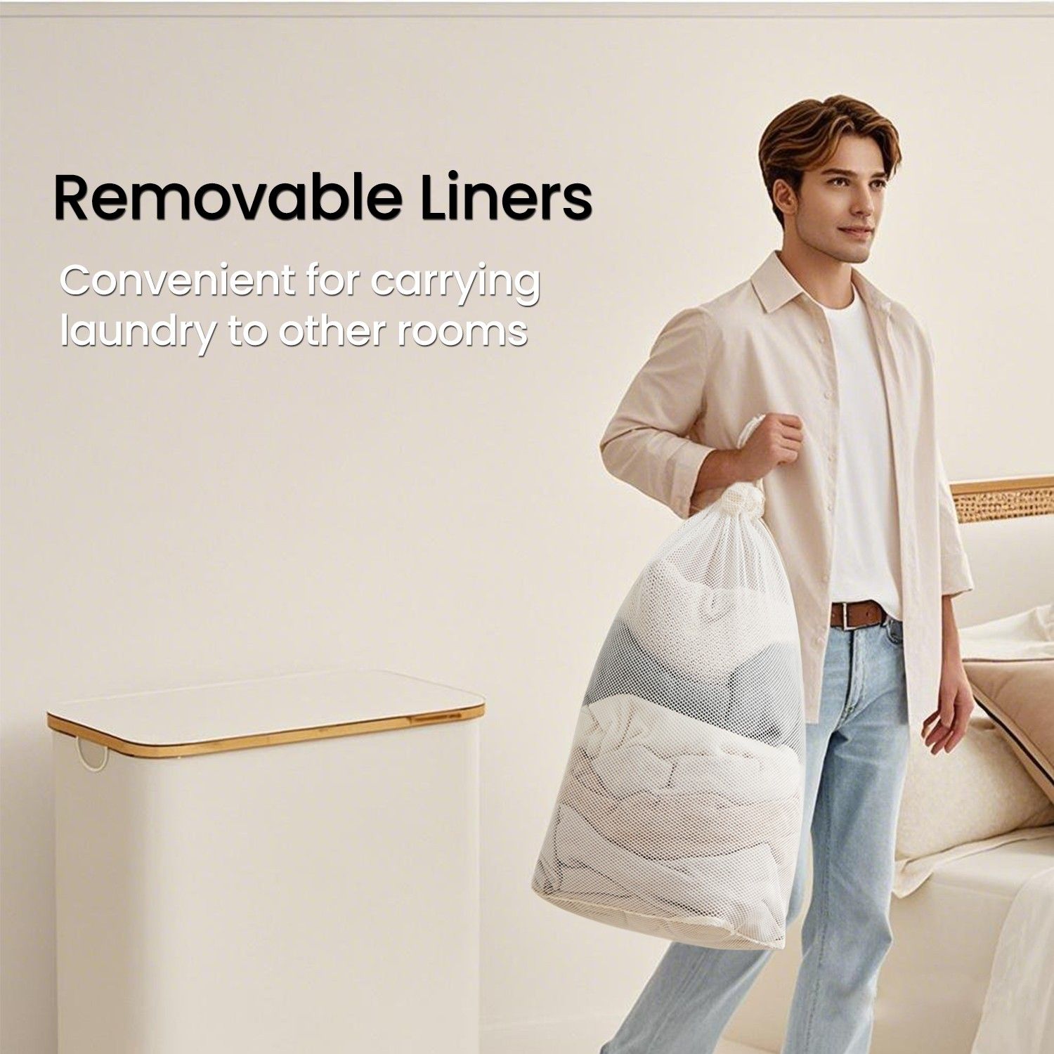 Laundry Basket - VERRA 2-Section Large Hamper with Lid 130L - White