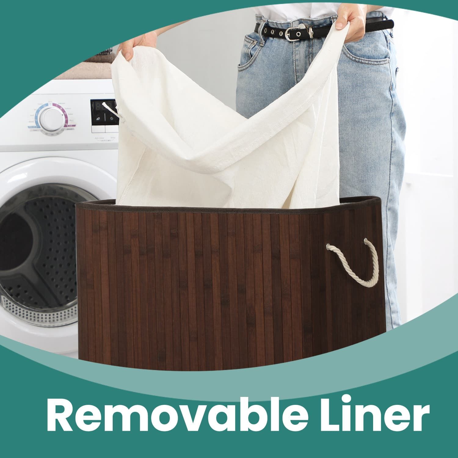 Laundry Basket - VERRA Bamboo 2 Compartment Removable Bag - Brown