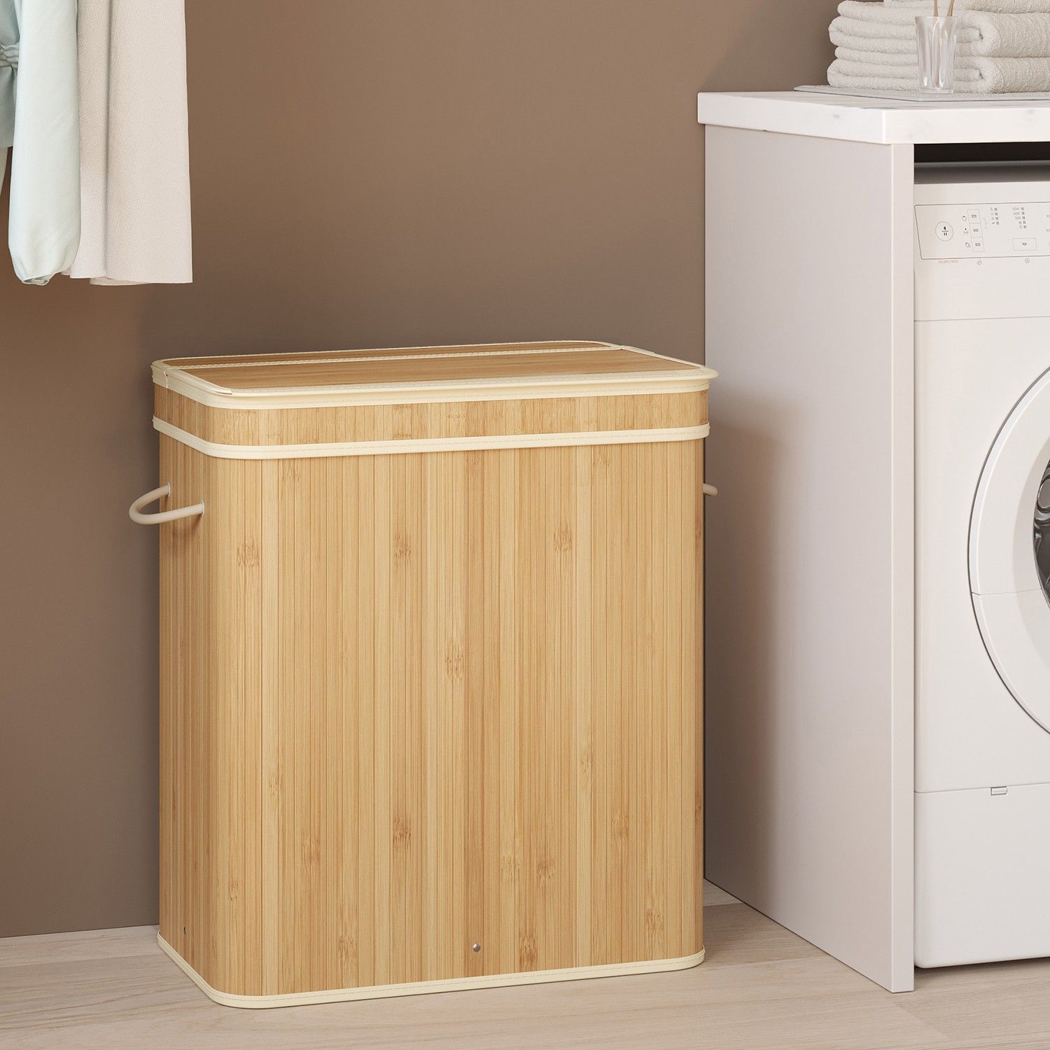 Laundry Basket - VERRA Bamboo with Lid Removable Oak - Beige