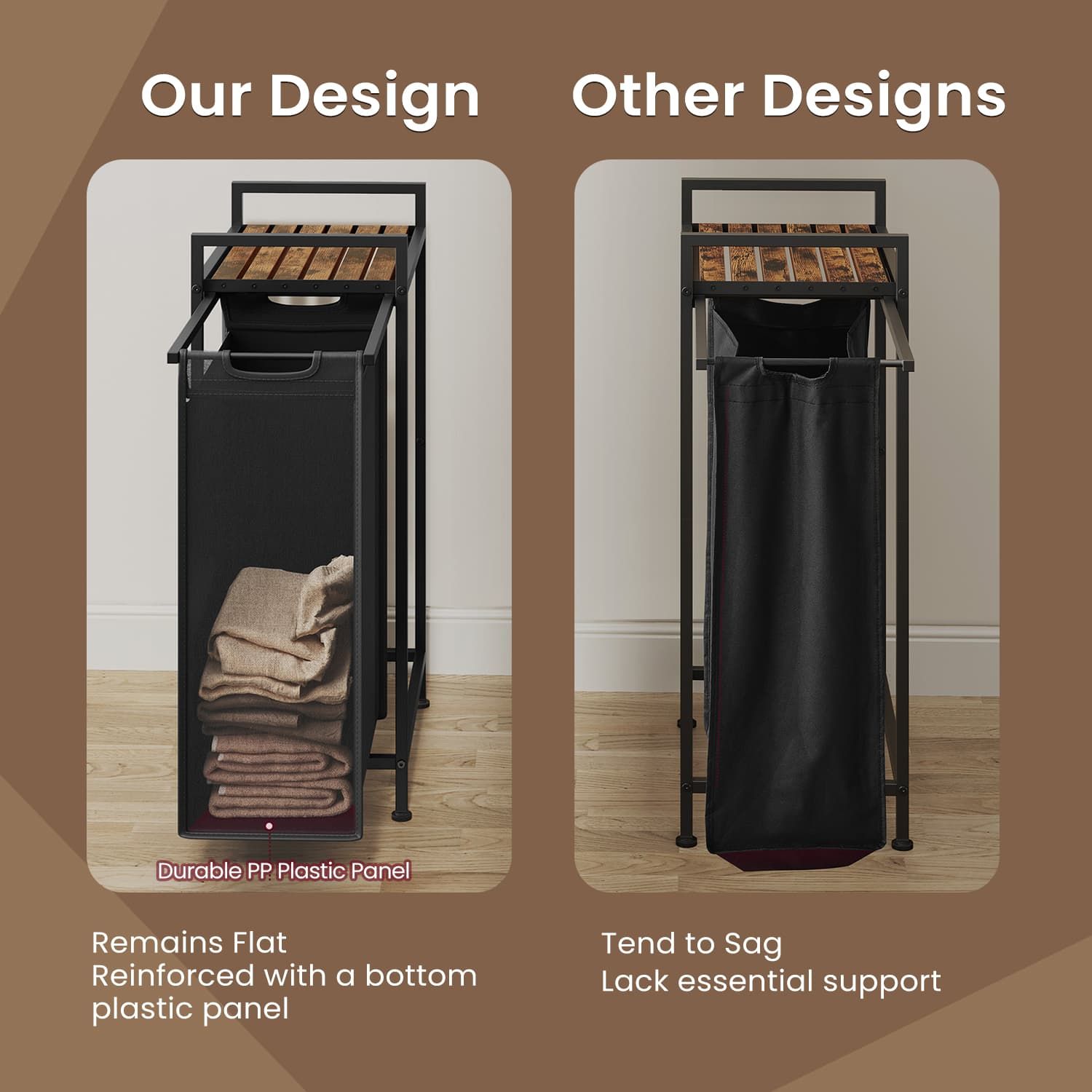 Laundry Hamper - MARDA Basket 47L Pull Out Liner and Shelf - Dark Wood