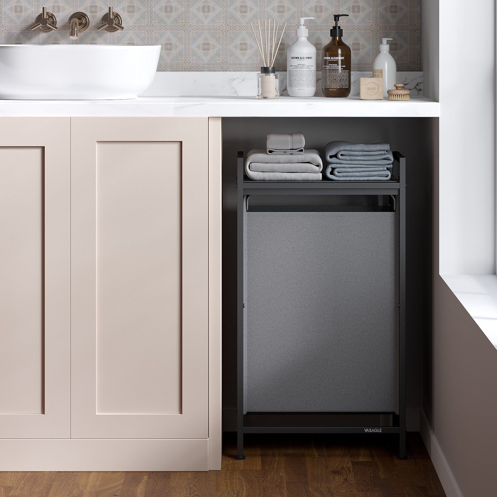 Laundry Hamper - MARDA Basket Sorter Pull Out Liner Shelf - Grey