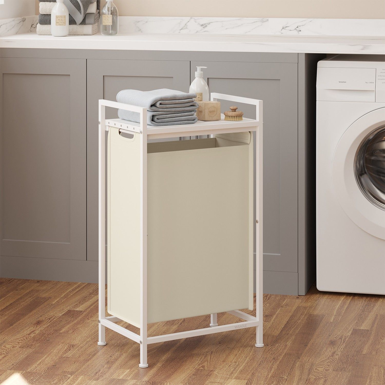 Laundry Hamper - MARDA Basket Sorter Pull Out Liner Shelf - White
