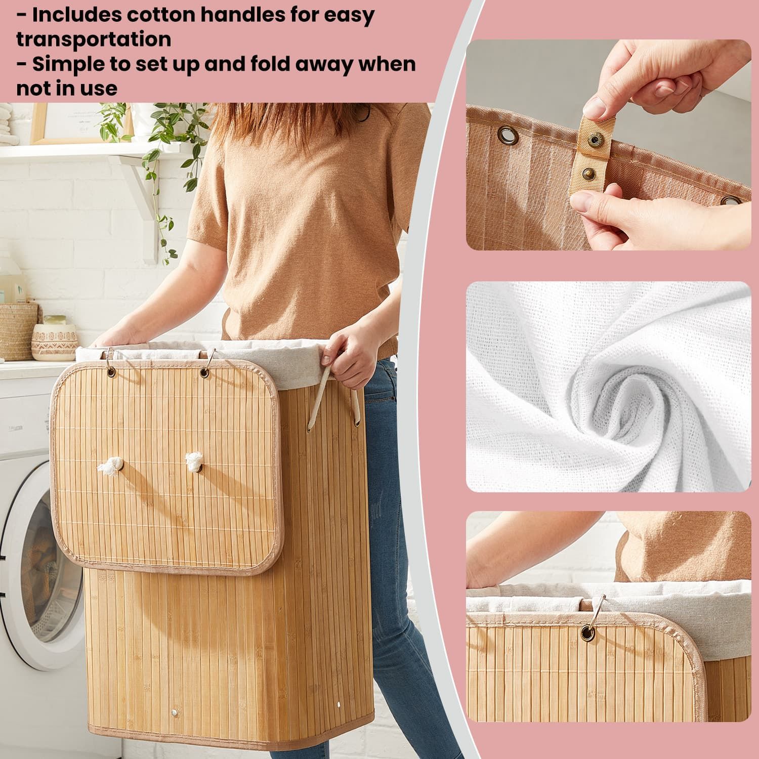 Laundry Hamper - VERRA Foldable Bamboo Basket with Lid and Handles - Oak
