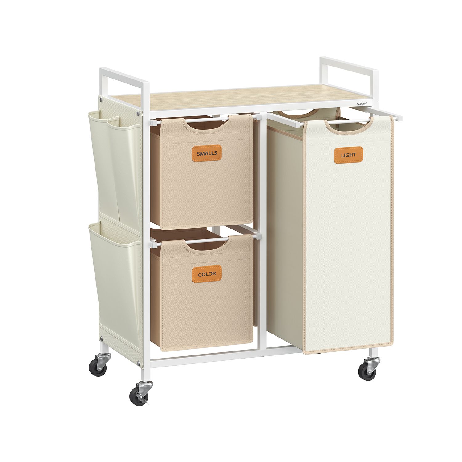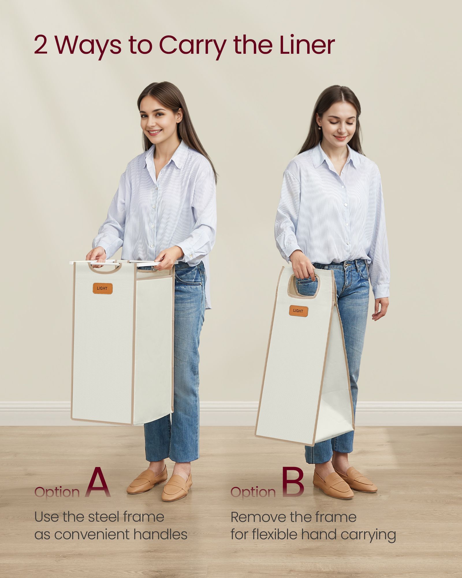 Laundry Hamper - ZARDA 100L 3 Compartment - Beige, Camel Brown, White