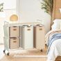 Laundry Sorter - MARDA 4 Compartment Rolling Cart with Removable Bag - Camel Brown and White