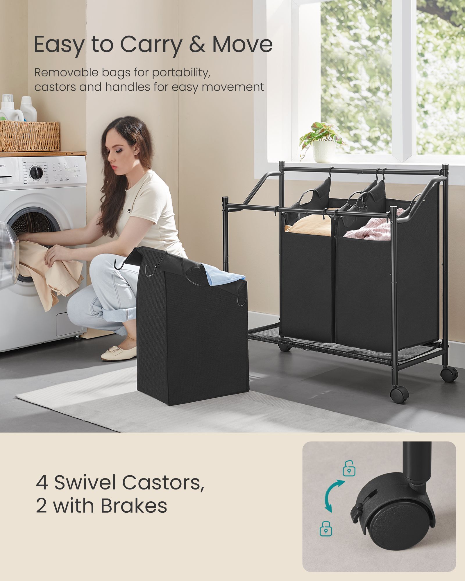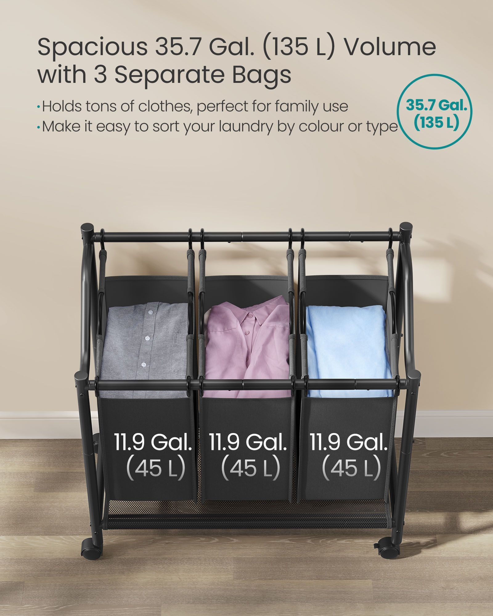 Laundry Sorter - VIVNA Rolling with 3 Removable Bags - Black
