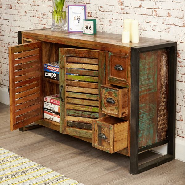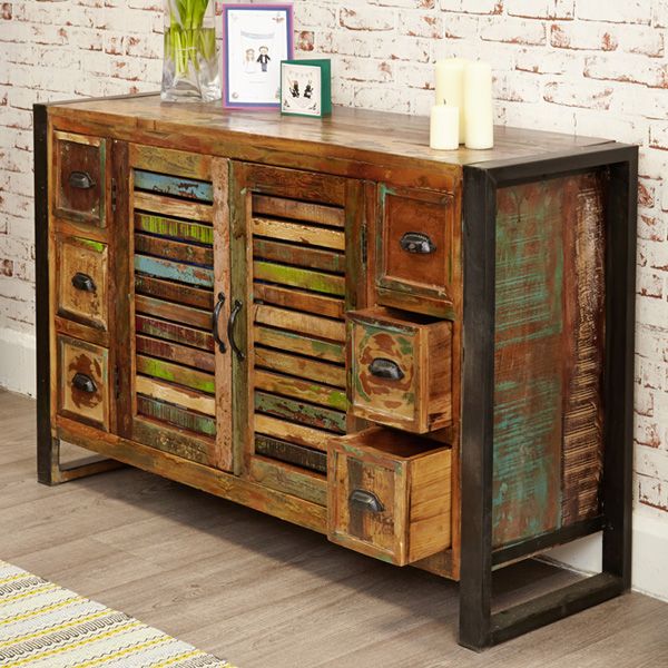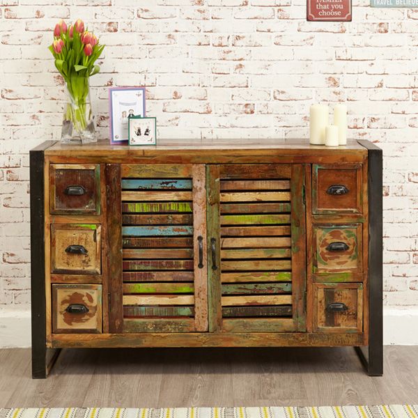 Introducing our unique contemporary 6-drawer 2-door sideboard from the exclusive Laura Chic furniture range, meticulously crafted with reclaimed wood for a sustainable and environmentally friendly design. Each piece is individually hand-finished with a blend of reclaimed timbers, ensuring its distinctiveness and character.