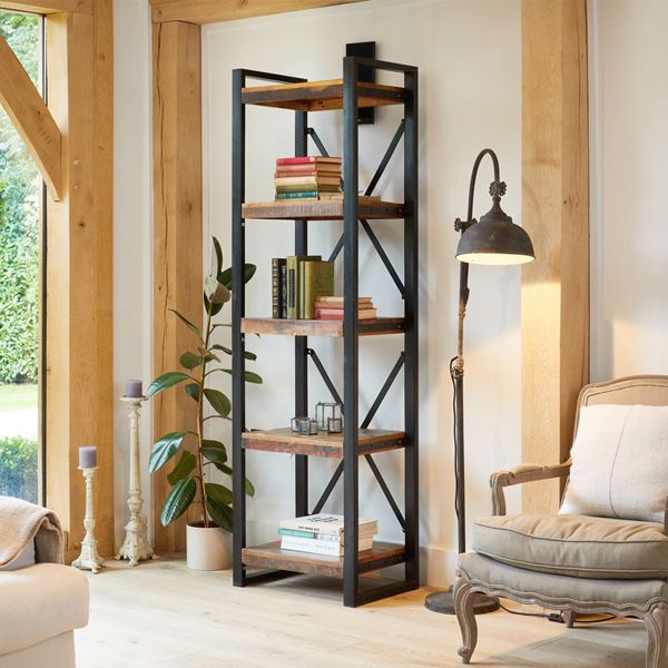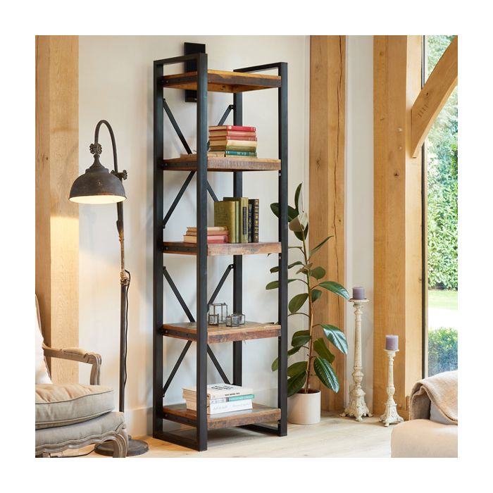 Introducing a unique addition to our exclusive Laura Chic range, this contemporary alcove open bookcase combines rustic charm with modern design. Crafted using reclaimed wood, each piece in the collection is hand-finished, ensuring individuality and character. The steel outer frame adds structural rigidity and a touch of industrial style, complementing the rustic wood beautifully.