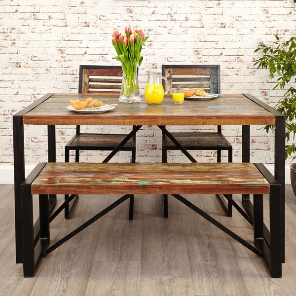 Laura Chic Reclaimed Wood Dining Bench with Steel Frame - Natural Wood