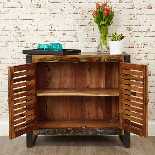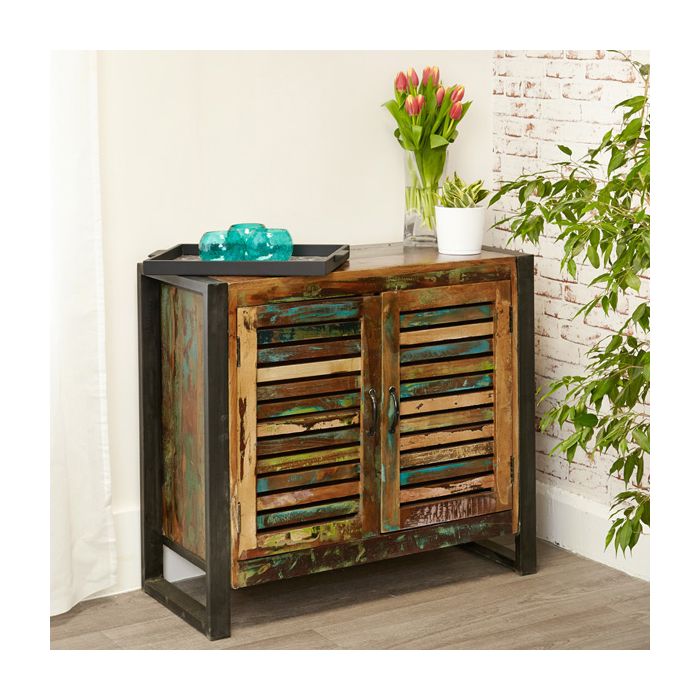 Introducing our unique contemporary small sideboard from the exclusive Laura Chic furniture range, meticulously crafted with reclaimed wood for a sustainable and environmentally conscious design. Each piece is hand-finished with a distinctive blend of reclaimed timbers, ensuring its individuality and character.