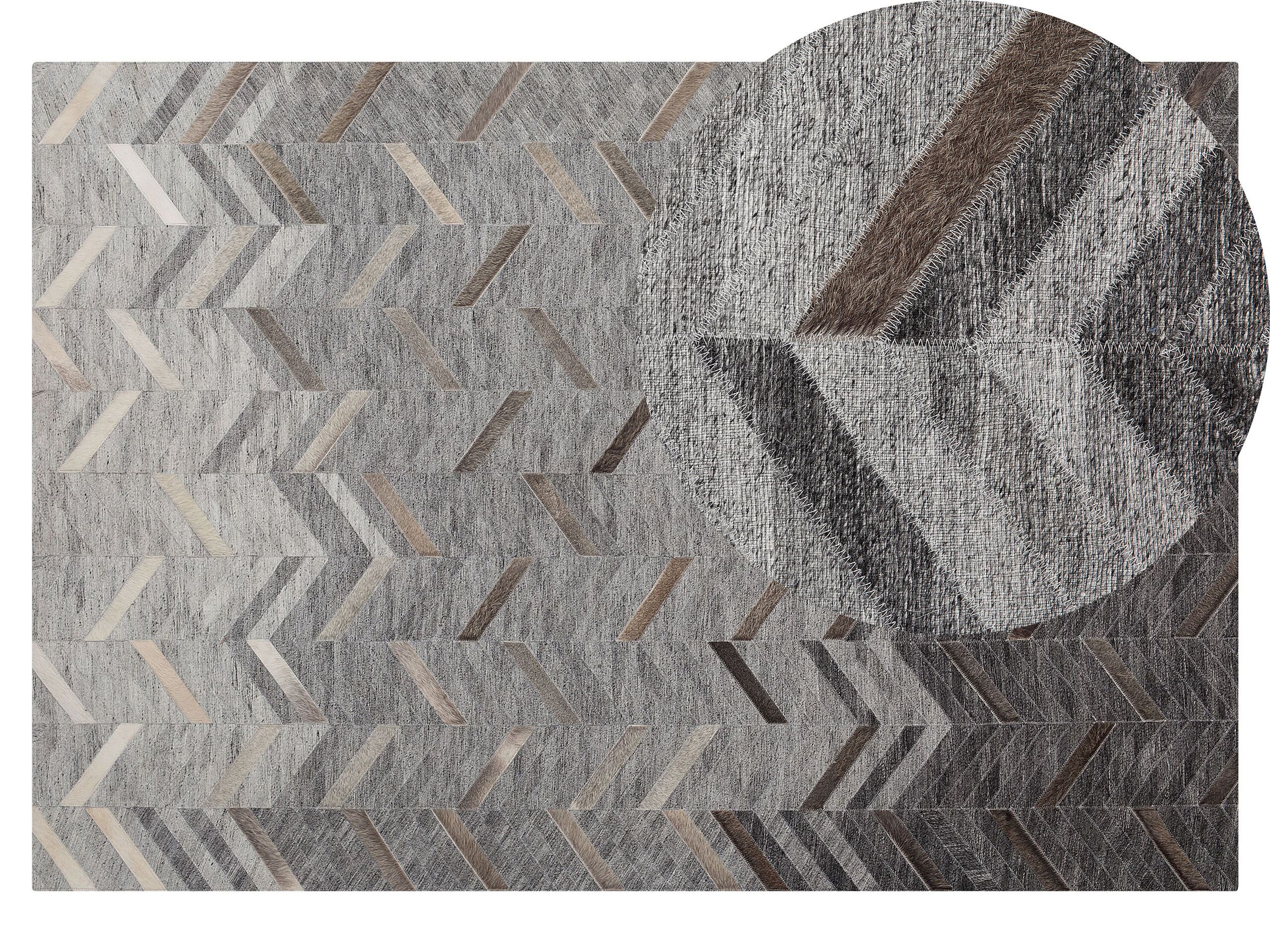 Add a modern vibe to your interior and enhance it with this area rug. Crafted from durable, genuine leather this rug provides a pleasant and soft surface underfoot. Featuring a striking geometric monochromatic patterning it draws attention whilst adding a cosy feeling to any space. Thanks to a combination of lighter and darker tones it can work with various decor styles. Details: Color: Grey, Brown, Beige. Main material: Viscose. Additional material: Leather. Weight: 4 Assembly: Does Not Require Assembly