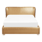 This golden leather bed is set to become a centre-piece of your bedroom while also providing you with an excellent, relaxing sleep. It is covered in luxurious, high-quality materials. The bed features short silver legs that complement the overall sophisticated look. Its frame is made of solid wood which guarantees stability and durability over the years. LED lights included with the bed can add a romantic touch to your interior, elevating the look of your bedroom. Details: Color: Gold, Silver. Main material: Leather. Additional material: Metal, Poplar Wood. Weight: 59 Assembly: Full Assembly Required Wood type: Populus Wood Origin: China Weight Capacity: 250 Legs Height: 5 Sleeping Surface: 140x200