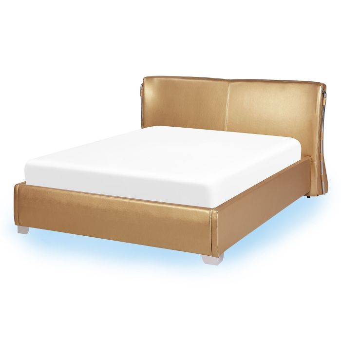 You're reviewing:Leather EU Double Size Bed with LED Gold PARIS