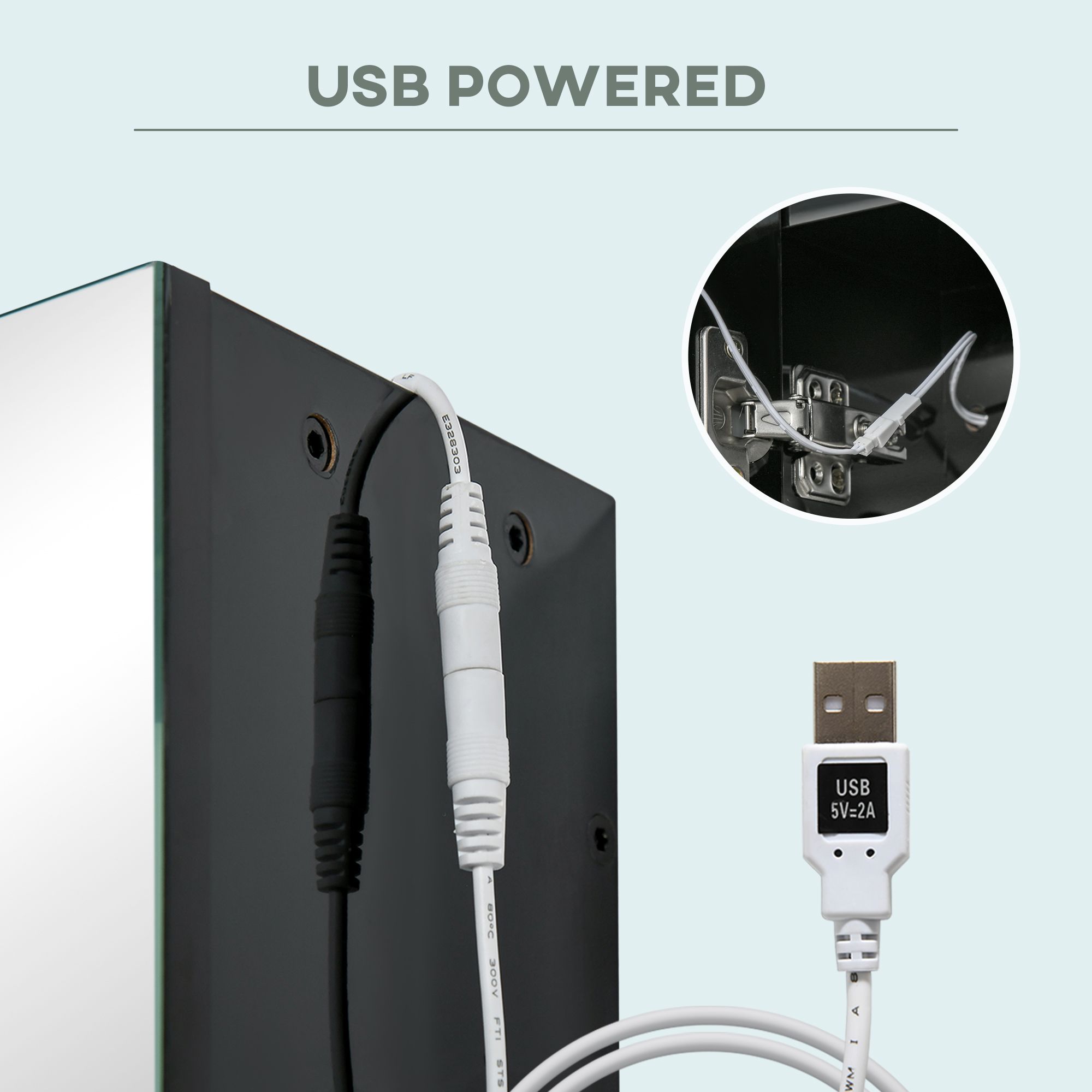 - SMART LIGHTING: This bathroom wall cabinet features 6500 K white LED lighting, powered by USB; you can change the brightness with its touch sensor, and it is capable to remember your settings the next time you use it