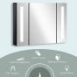 LED Bathroom Cabinet with Mirror, Wall Mounted Dimmable Storage Organiser with 3 Mirrored Doors and Adjustable Shelves